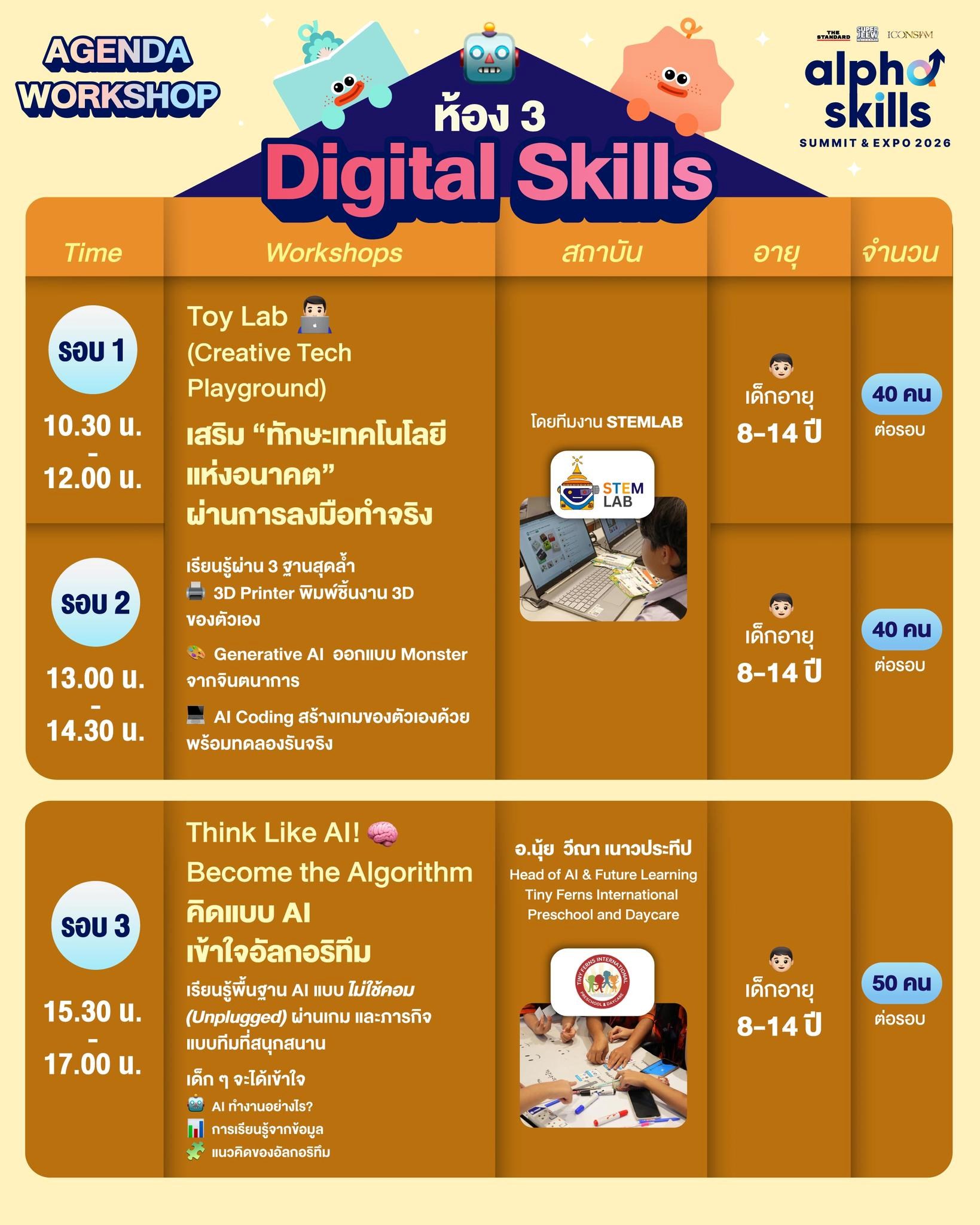 • สามารถแจ้งเปลี่ยนชื่อผ่านช่อง Chatbox มุมขวาล่างของเว็บไซต์ https://www.zipeventapp.com/e/Alphaskillssummit2026