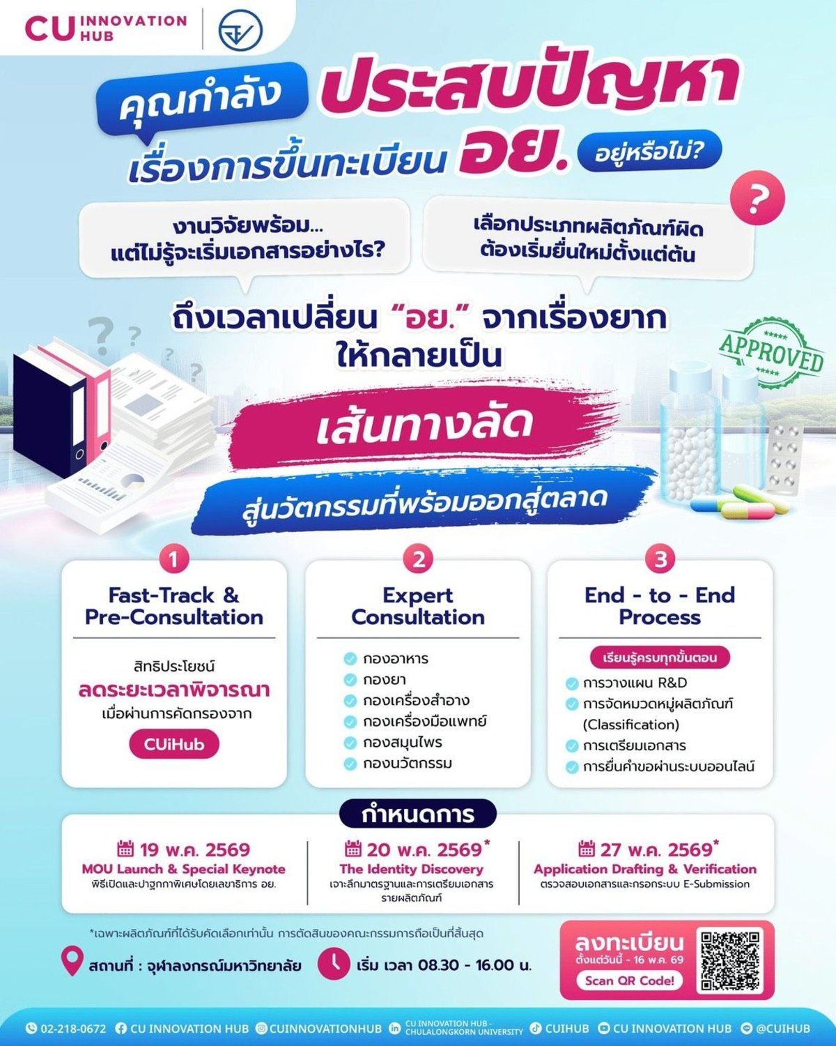 🗓️ 19 พฤษภาคม 2569 การสร้างเส้นทางลัดเพื่อขึ้นทะเบียนผลิตภัณฑ์นวัตกรรมให้ออกสู่ตลาดได้จริง