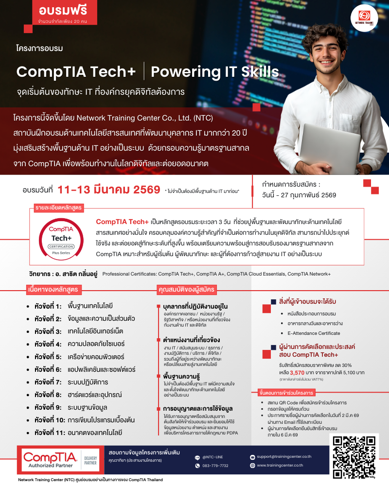📅 รายละเอียดการอบรม CompTIA Tech+ | Powering IT Skills