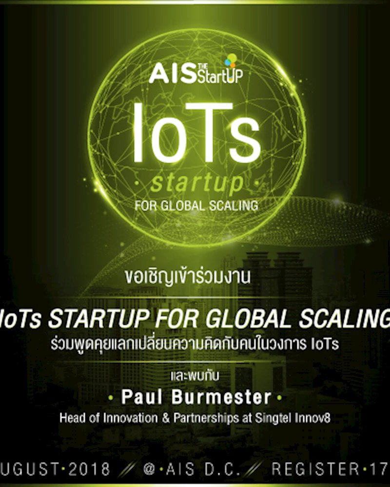 พบกับ Paul Burmester, Head of Innovation & Partnerships at Singtel innov8 ที่จะมาร่วมพูดคุยและแชร์เรื่องราวต่างๆ ไม่ว่าจะเป็น ทำอย่างไรให้ IoTS Startup สามารถสเกลอัพได้, การเลือก VC/CVC และหัวข้ออื่นๆที่น่าสนใจอีกมากมาย