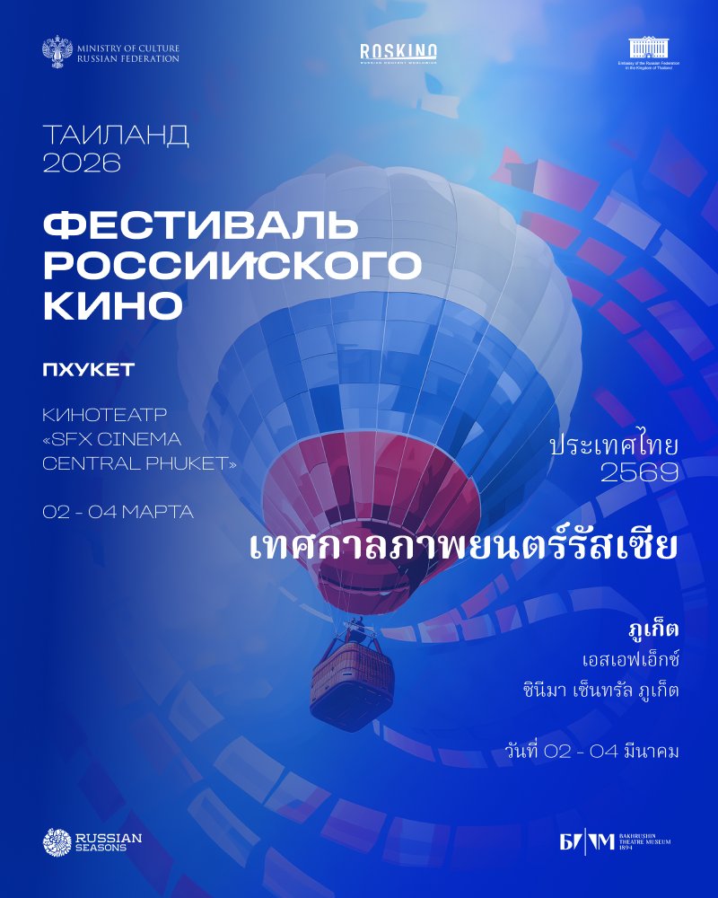 🙏🇷🇺🇹🇭❤️ The Russian Film Agency (Roskino) and the Russian Embassy in Thailand cordially invite all Thai film enthusiasts to join us for a selection of diverse films at the Russian Film Festival 2026, held at SFX Central Phuket from March 2-4, 2026. Admission is free.