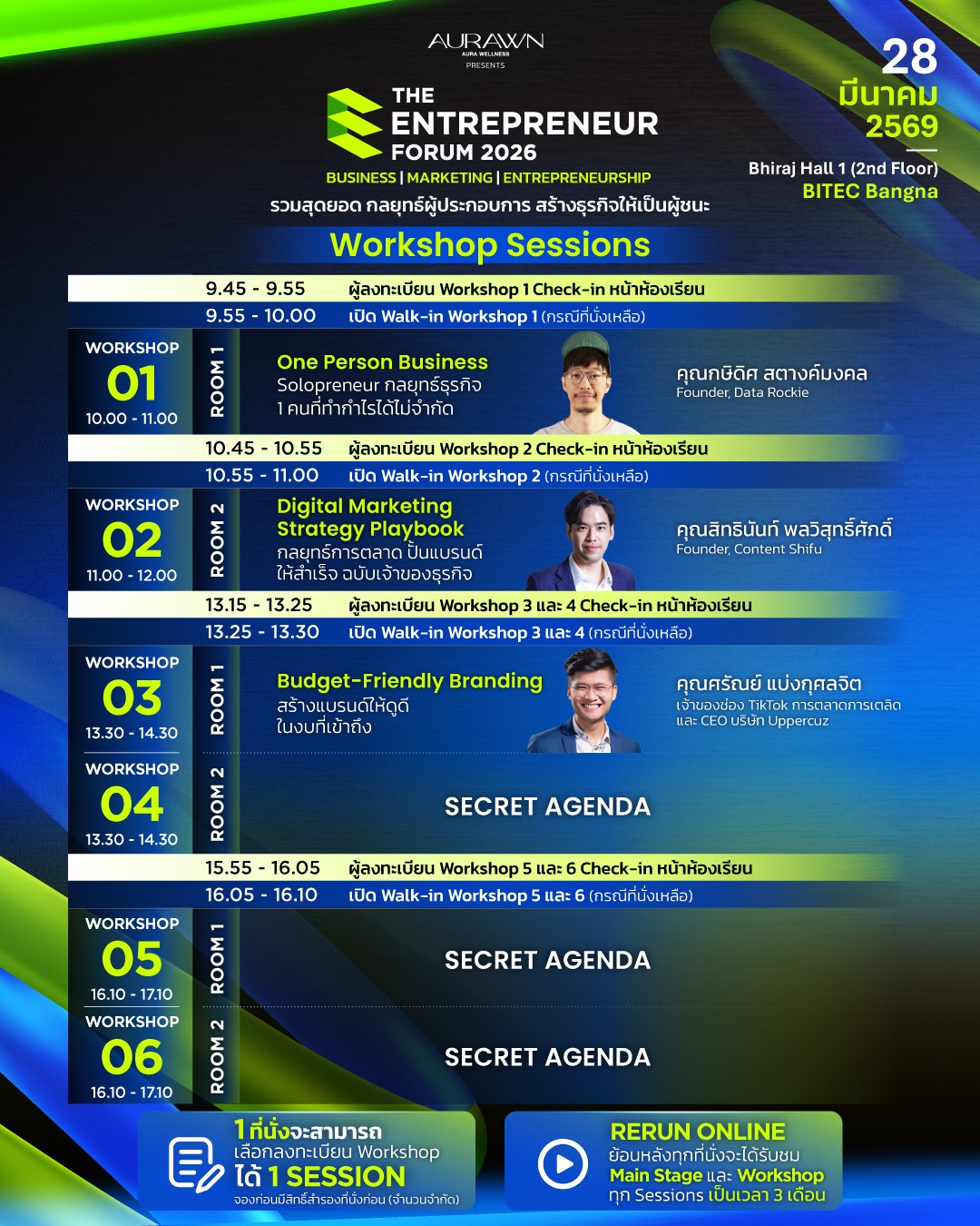 | 13.30 - 14.30 | Budget-Friendly Branding สร้างแบรนด์ให้ดูดี ในงบที่เข้าถึง | AVAILABLE |