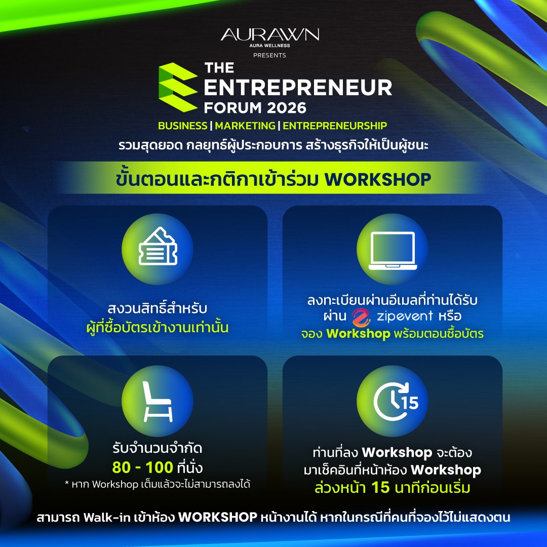 | 10.00 - 11.00 | One Person Business Solopreneur กลยุทธ์ธุรกิจ 1 คนที่ทำกำไรได้ไม่จำกัด | AVAILABLE |