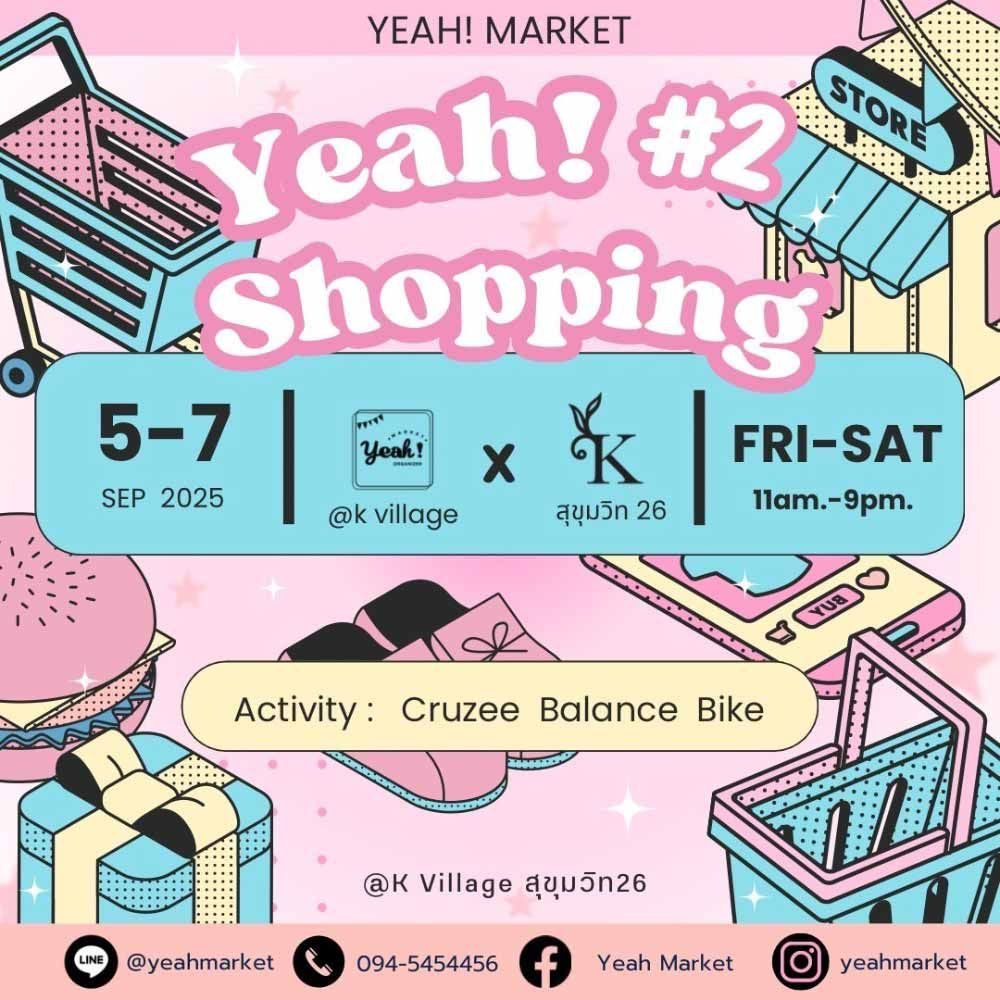 งาน “Yeah Shopping” แวะมาช็อปปิ้งกันนะคะ มีทั้งโซนแฟชั่นและโซนอาหาร ในลานมีกิจกรรม Mom&Kids Contest แล้วพบกันที่ K Village