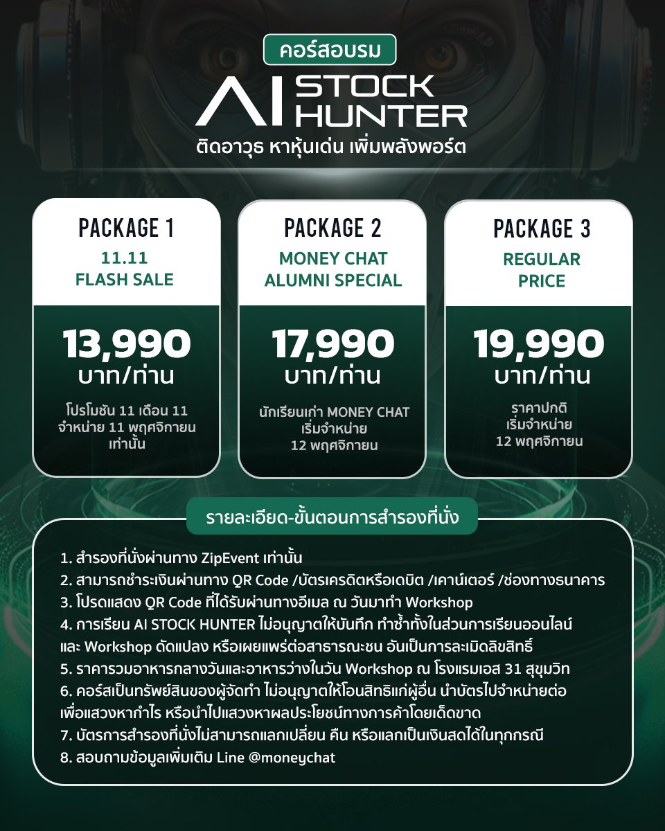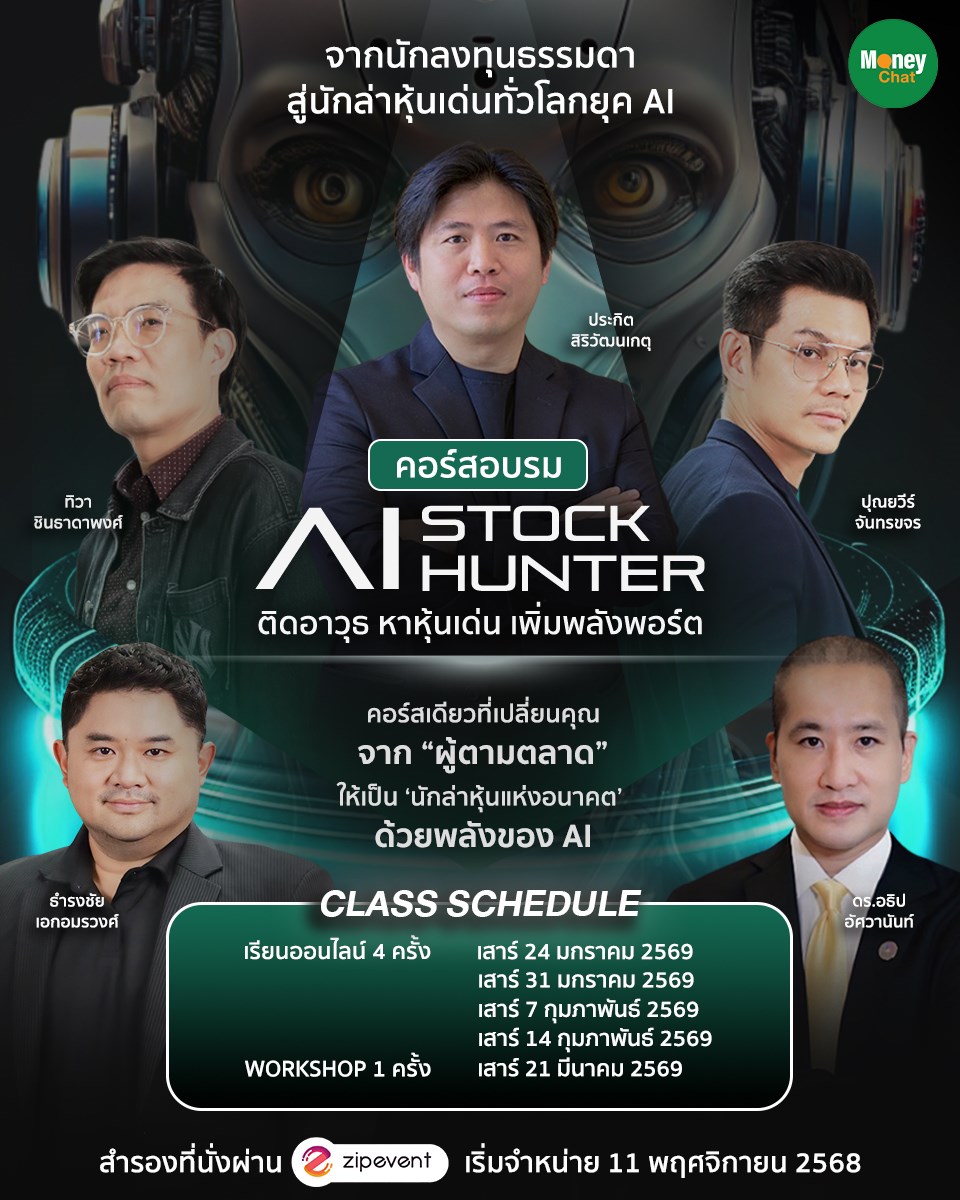 Money Chat มองเห็นการเปลี่ยนผ่านครั้งใหญ่ของวงการนี้ จึงลงพื้นที่พูดคุยกับผู้เชี่ยวชาญด้านเทคโนโลยี AI นักลงทุนมืออาชีพ นักวิเคราะห์ และผู้บริหารกองทุน เพื่อค้นหาคำตอบว่า AI จะช่วยให้เรามองตลาดได้ลึกขึ้นและแม่นยำขึ้นอย่างไร จนได้องค์ความรู้ที่สามารถนำมาพัฒนาเป็นคอร์สอบรม "AI Stock Hunter ติดอาวุธ หาหุ้นเด่น เพิ่มพลังพอร์ต" ที่ตั้งใจ “ติดอาวุธ AI” ให้กับนักลงทุนไทย