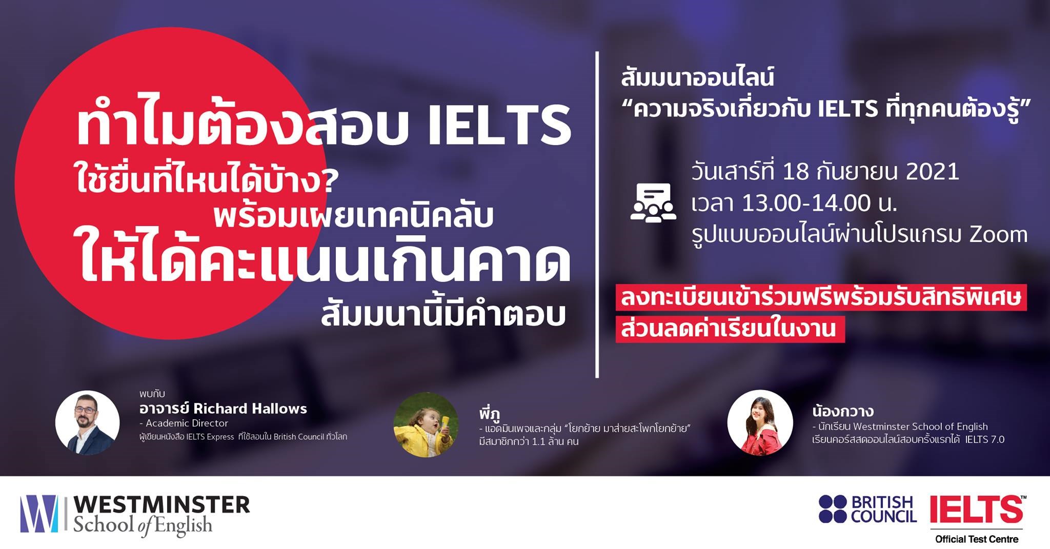 สัมมนาออนไลน์ “ความจริงเกี่ยวกับ IELTS ที่ทุกคนต้องรู้”