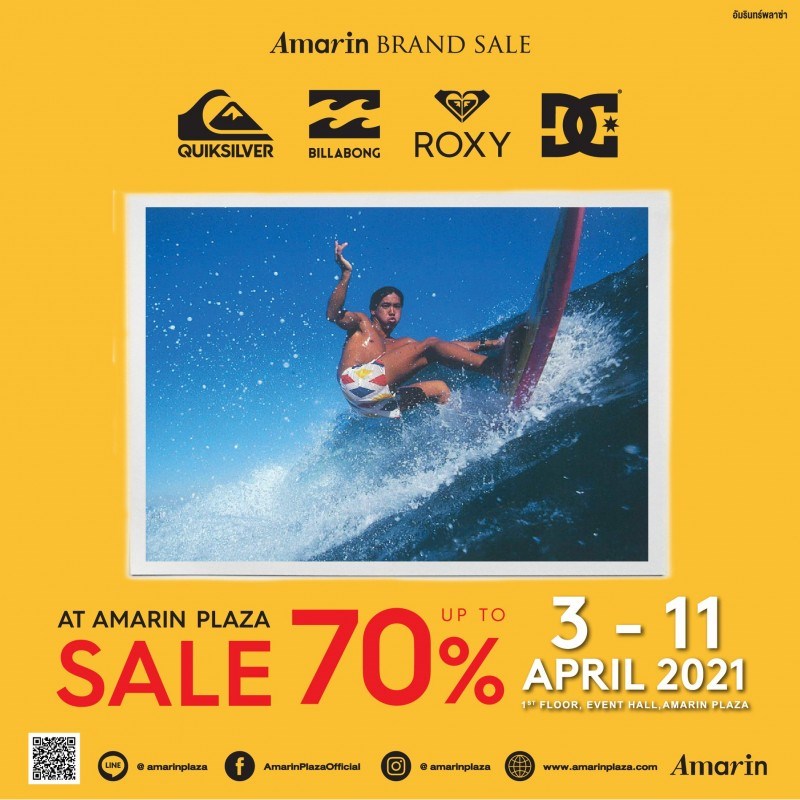 Amarin Brand Sale วันที่ 3 - 11 เมษายน 2564 เวลา 10.00 - 21.00 น. ณ Event Hall ชั้น G Amarin Plaza SALE70% ตามคำเรียกร้อง เข้าหน้าร้อนก็เลยจัดสินค้าโปรสุดฮอตมาให้คุณ ยกสินค้าในเครือมาลดราคากันมากมาย ไม่ว่าจะเป็น เสื้อผ้า, ชุดว่ายน้ำ, บิกินี่, กางเกง Boardshort, เสื้อ Rash Guard และ Accessories อีกเพียบ Quiksilver