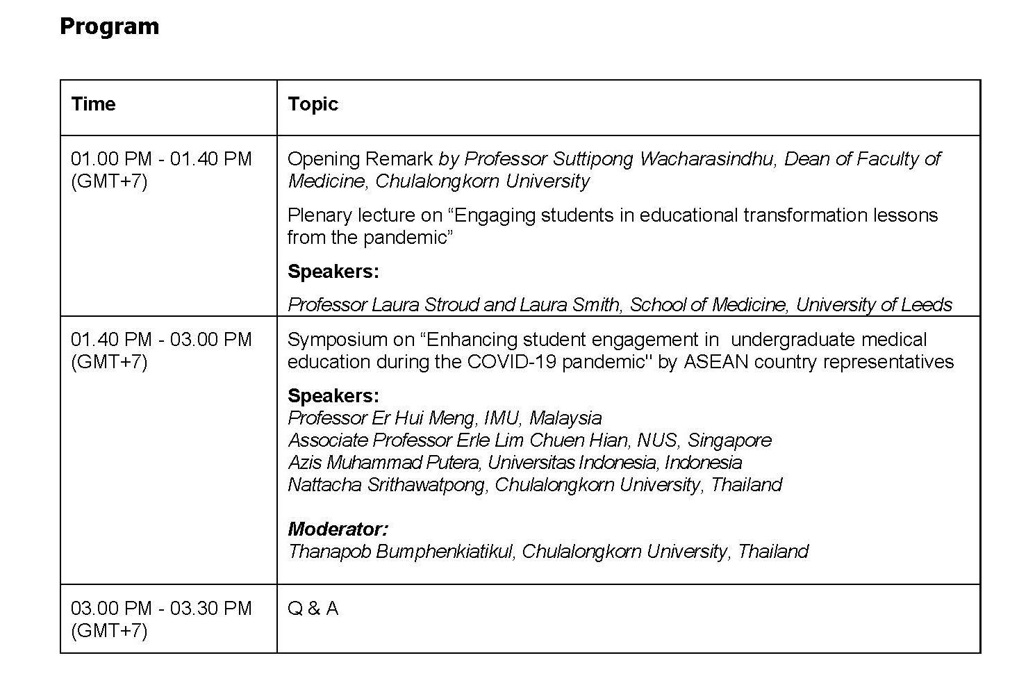 We do welcome all educators and institutes to join the conference and free of charge. We believe that our seminar will facilitate learning and discussion across the ASEAN network around the significant disruption to the provision of medical education during the COVID-19 pandemic.