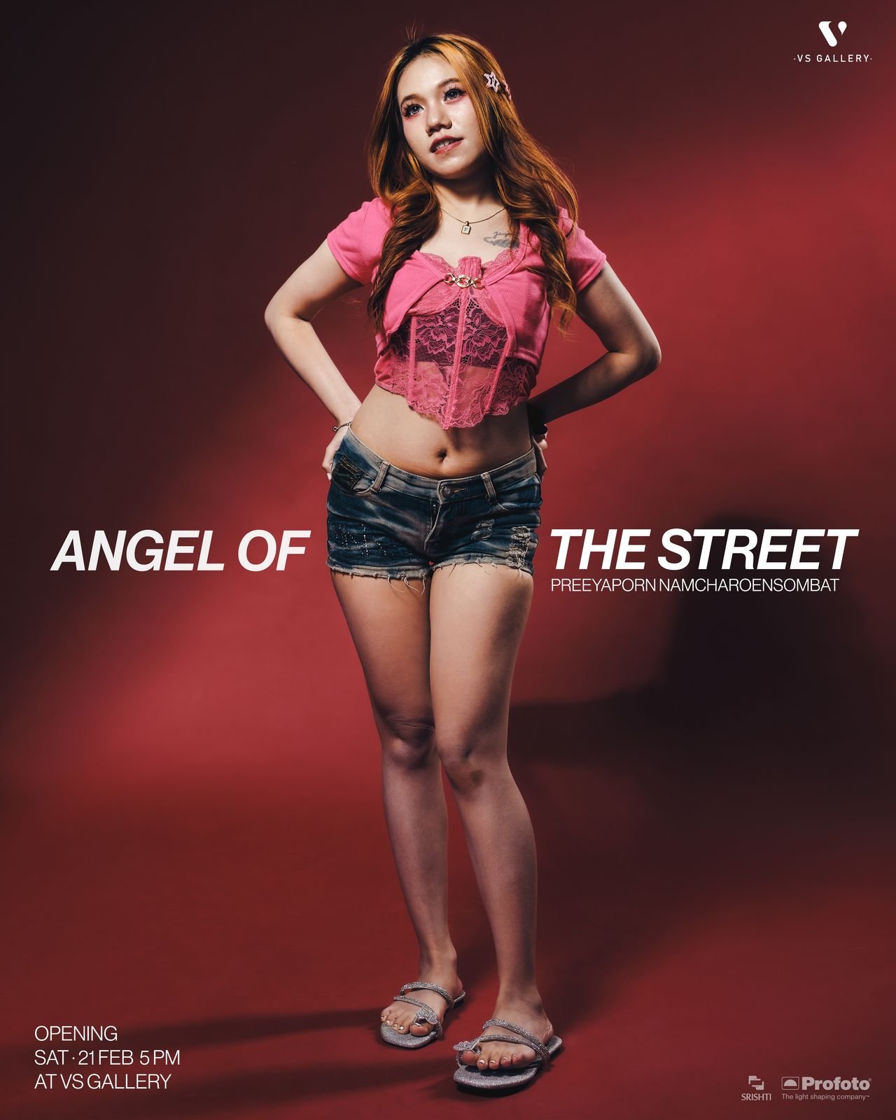VS Gallery ภูมิใจเสนอ Angels of the Street นิทรรศการภาพถ่ายโดย ปรียาภรณ์ นำเจริญสมบัติ ที่จะพาผู้ชมสำรวจวัฒนธรรมย่อย (subculture) ทางแฟชันและวิถีไลฟ์สไตล์ของเหล่าหญิงสาววัยรุ่นกลุ่มหนึ่ง ผ่านสายตาของผู้หญิง (female gaze) ด้วยกัน โดยภาพถ่ายเหล่านี้สะท้อนมุมมองทางแฟชั่นผ่านแนวคิด Anti-Fashion ซึ่งตั้งคำถามต่อบรรทัดฐานสังคมและภาพลักษณ์ที่เคยถูกสร้างให้เป็นลบและถูกเข้าใจผิดโดยสังคมชายเป็นใหญ่ ซึ่งคอยจำกัดนิยามความเหมาะสมถูกผิดแทนผู้หญิง