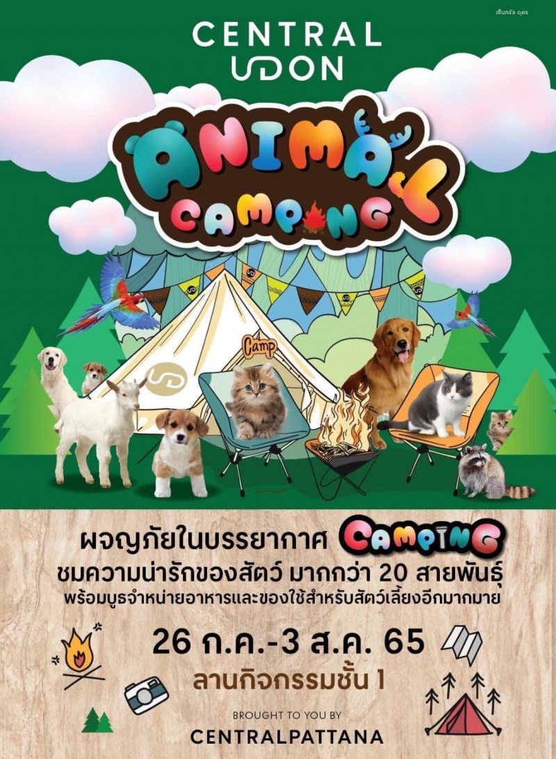 Animal Camping วันที่ 26 กรกฎาคม - 3 สิงหาคม 2565 ณ เซ็นทรัล อุดร เตรียมผจญภัยไปกับเหล่าสัตว์น้อยแสนน่ารัก มากกว่า 20 สายพันธ์ ในงาน "Animal Camping" ไม่ว่าจะเป็นแพะแองโกล่า ม้าแคระ แฮมเตอร์น้อยน่ารัก น้องหนูแกสบี้ นกแก้วมาคอร์ เหยี่ยว กระต่าย นกฮูก และอีกมากมายภายในงาน พร้อมสนุกไปกับกิจกรรมป้อนอาหารสัตว์ ทำ Workshop แม่เหล็กรูปน้องสัตว์สุดน่ารัก และช้อปเพลินกับสินค้าไอเท็มสัตว์เลี้ยงต้องมีติดบ้านในราคาพิเศษได้ภายในงาน ตั้งแต่วันที่ 26 ก.ค. - 3 ส.ค. 65 ลานกิจกรรมชั้น 1 เซ็นทรัล อุดร