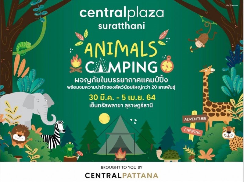 Animal Camping วันที่ 30 มีนาคม 2564 - 5 เมษายน 2564 ณ พื้นที่โปรโมชั่น ชั้น 1 ศูนย์การค้าเซ็นทรัลพลาซา สุราษฎร์ธานี กลับมาแล้วจ้า มาชมความน่ารักของเหล่าสัตว์น้อยใหญ่อย่างใกล้ชิดกว่า 20 สายพันธุ์ อาทิ เมียร์แคท / แรคคูน /แพะแองโกล่า /แกะโฟฮอร์น /เต่าซูคาต้า /งูบอลไพทอล /นกแก้วซันคอนัวร์ /นกแก้วแอฟริกันเกรย์ เพลิดเพลินกับกิจกรรมป้อนอาหารสัตว์ สร้างสรรค์จินตนาการกับกิจกรรม Workshop ช้อปสัตว์เลี้ยงน่ารัก และสินค้าของสัตว์เลี้ยงมากมาย ในงาน Animal Camping (แอน-อิ-มอน-แคม-ปิ้ง)