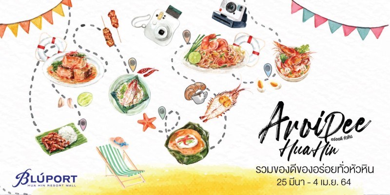 Aroi Dee Hua Hin วันที่ 25 มีนาคม 2564 - 4 เมษายน 2564 ณ Event Port ชั้น G Blúport Huahin มหกรรมรวมของดี ของอร่อยทั่วหัวหินไว้ในที่เดียว ในงาน Aroi Dee Hua Hin