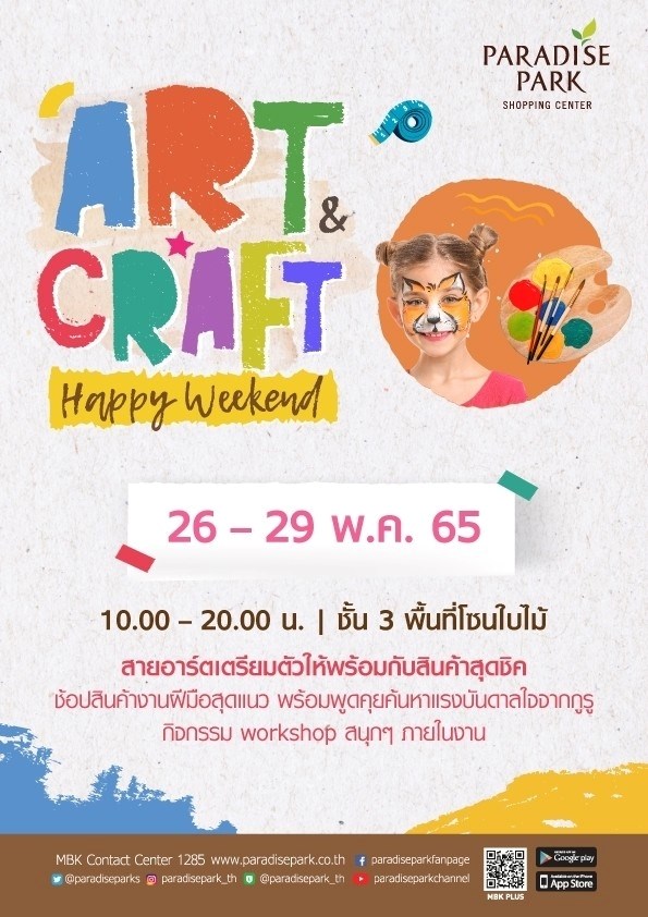 สายอาร์ตเตรียมตัวให้พร้อมกับสินค้าสุดชิค ช้อปสินค้างานฝีมือสุดแนว พร้อมพูดคุยค้นหาแรงบันดาลใจจากกูรูงาน Craft กับร้านค้า และยอดฝีมือทีเป็นเจ้าของผลงานตัวจริง ผลิตเอง ทำเอง ขายเอง และสอนให้ด้วย พร้อม Shopping! อุปกรณ์งานคราฟท์ งานทํามือต่าง ๆ มีให้เลือกมากมาย และกิจกรรม Workshop สนุก ๆ ภายในงาน