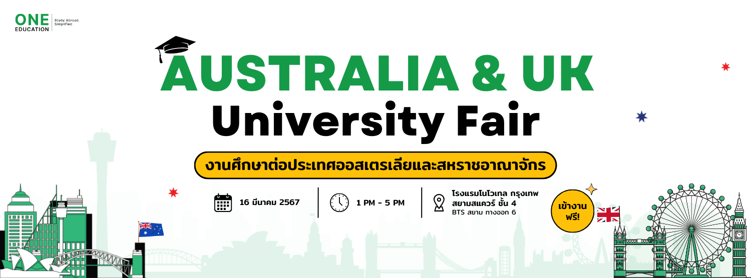 • พบกับตัวแทนมหาวิทยาลัยและสถาบันการศึกษาชั้นนำจากประเทศออสเตรเลียและสหราชอาณาจักรกว่า 20 แห่ง