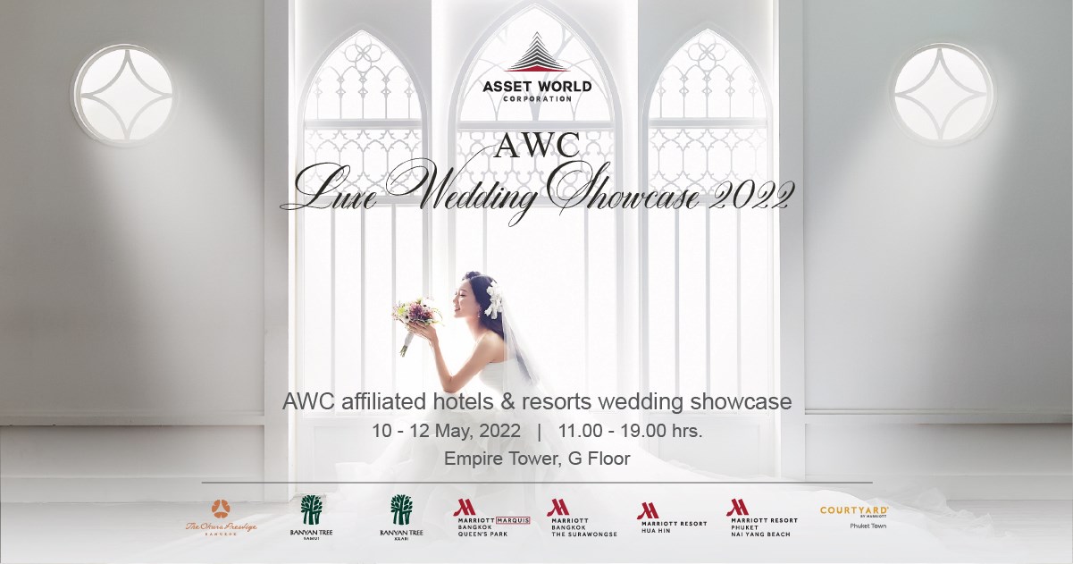 ขอเชิญชวนทุกท่านสู่งาน AWC Luxe Wedding Showcase 2022 ครั้งแรกของการรวบรวมแพ็กเกจแต่งงานสุดเอ็กซ์คลูซีฟจากโรงแรมและรีสอร์ทในเครือ AWC มาให้คู่รักเลือกสรรพร้อมรับโปรโมชั่นส่วนลดสุดพิเศษ ทั้งแพ็กเกจการจัดงานเลี้ยงฉลองงานแต่งงาน แพ็กเกจสำหรับฮันนีมูน แพ็กเกจฉลองสละโสดสำหรับว่าที่เจ้าบ่าวและเจ้าสาว รวมถึงข้อเสนออื่นๆ จากพาร์ทเนอร์ที่มาร่วมในงานอีกมากมาย