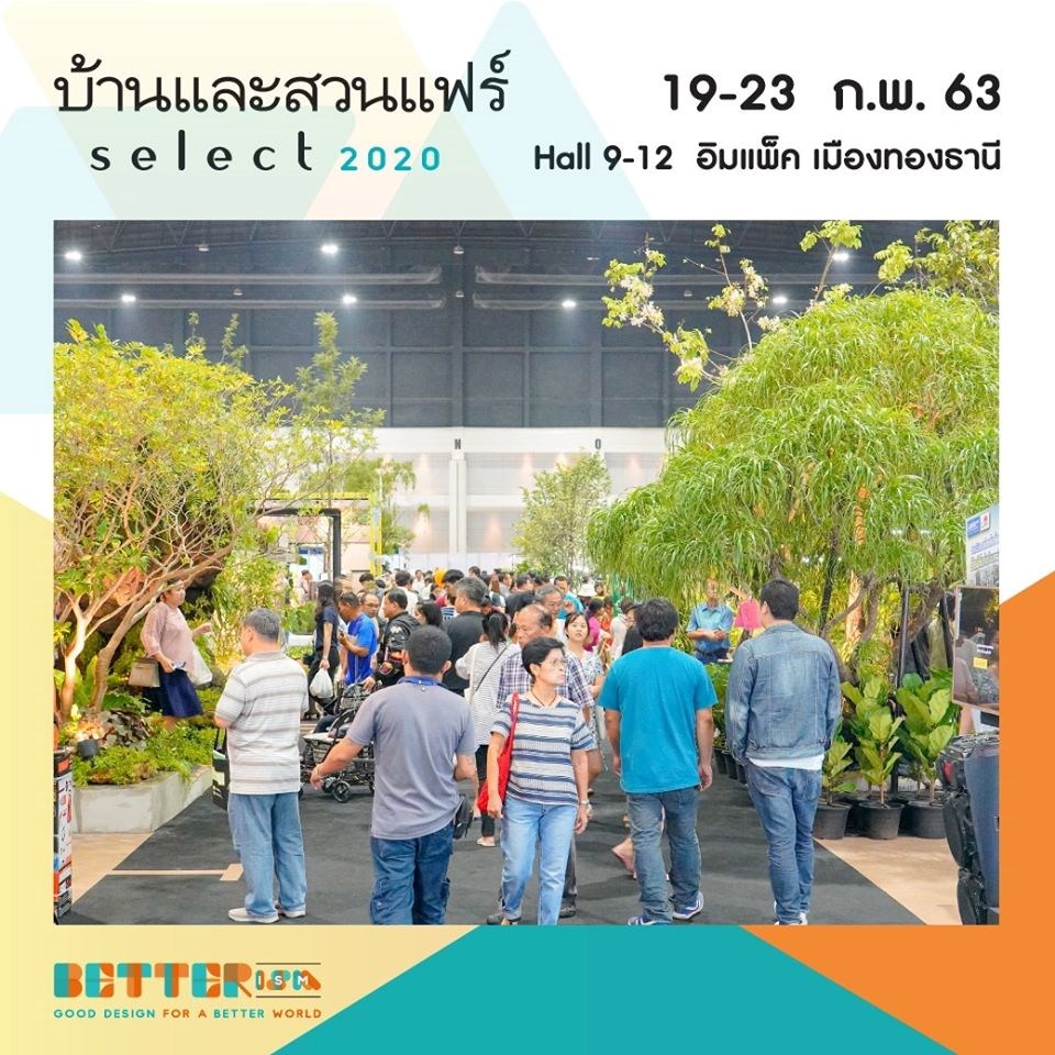 งานDesign Fair แรกของปีที่รวบรวมเทรนด์การออกแบบ เทรนด์เฟอร์นิเจอร์ และเอ๊าต์ดอร์ไลฟ์สไตล์เข้าไว้ด้วยกันโดยในงานบ้านและสวนแฟร์Select 2020ได้รวบรวมงานออกแบบของนักออกแบบไทยที่สะท้อนแนวคิดดังกล่าวมาจัดแสดงในรูปแบบที่คนทั่วไปสามารถเข้าใจ สัมผัสได้ และนำไปประยุกต์ใช้ได้จริง เพื่อเป็นการส่งเสริมแนวคิดและเผยแพร่ผลงานออกแบบที่ดีสำหรับโลกเหล่านี้ให้เป็นที่รู้จักในวงกว้าง และเปิดโอกาสให้ผู้เข้าชมงานทุกคนมีส่วนร่วมในการเปลี่ยนแปลงโลกใบนี้ให้ดีขึ้นด้วยมือของคุณเอง