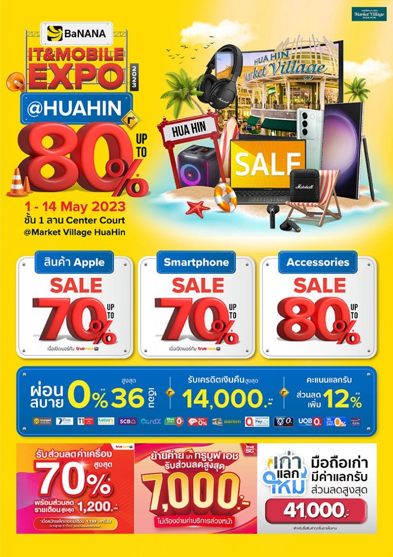 BaNANA IT & MOBILE EXPO ช้อปสนุกกับสินค้าไอทีราคาโดนใจ ลดสูงสุด 80% ตั้งแต่วันที่ 1 - 14 พฤษภาคม 2566 ณ ชั้น 1 ลาน Center Court @ Market Village Huahin
