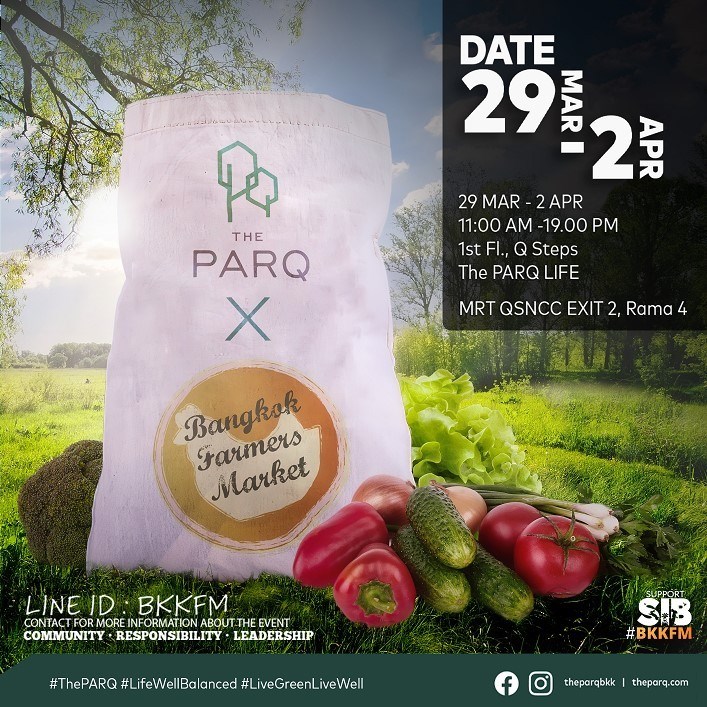Bangkok Farmers' Market at The PARQ วันที่ 29 มีนาคม 2564 - 2 เมษายน 2564 ณ The PARQ เดอะ ปาร์ค (The PARQ) โครงการไลฟ์สไตล์มิกซ์ยูสแห่งใหม่ที่มุ่งพัฒนาออฟฟิศและรีเทลอัจฉริยะภายใต้แนวคิด "Life Well Balanced" เอาใจสาวกสายกรีน จัดงาน Farmers’ Market at The PARQ ที่นอกจากจะสนับสนุนร้านค้าร้านอาหารท้องถิ่นแล้ว ยังพบกับเมนูออร์แกนิกมากมาย อาทิ