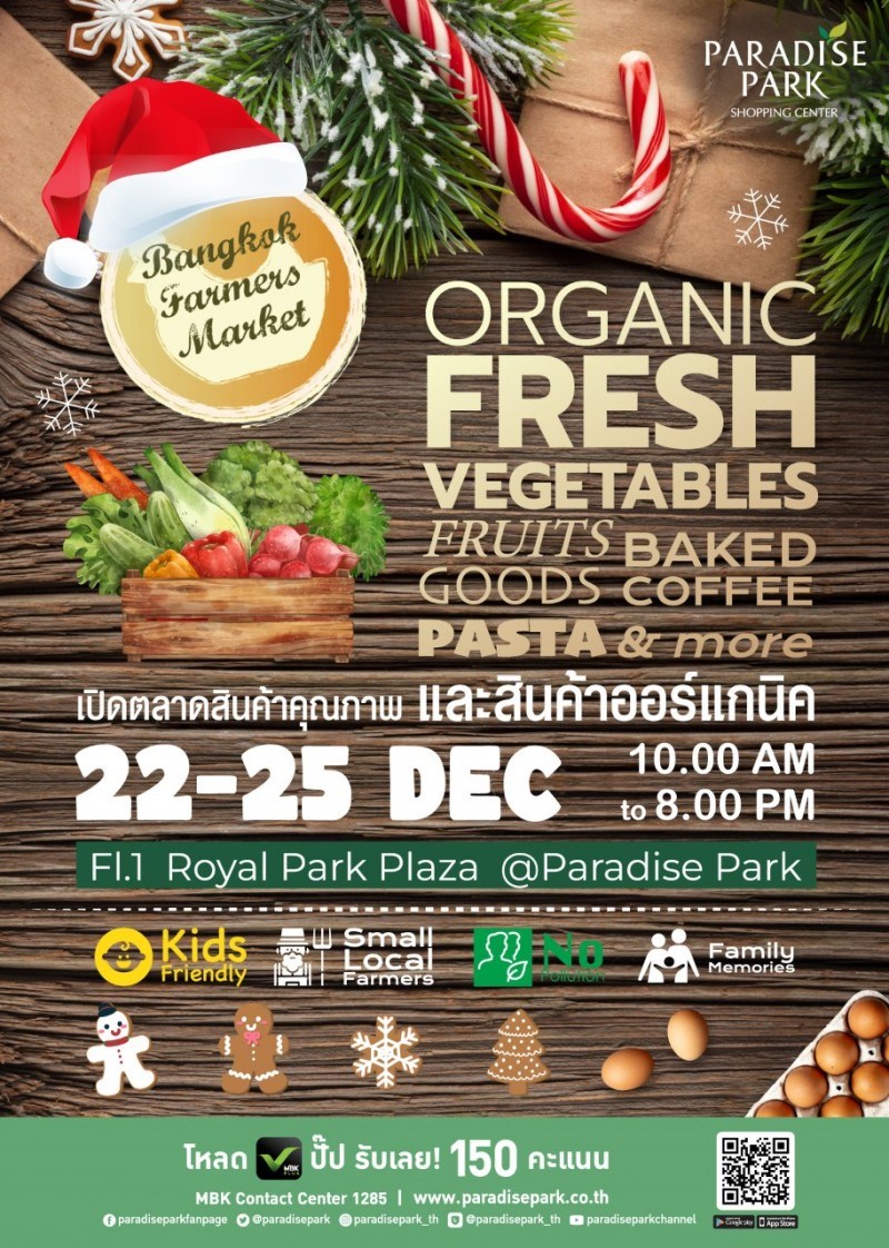 ศูนย์การค้าพาราไดซ์ พาร์ค ชวนมาสุขภาพดีไปด้วยกัน กับงาน Bangkok Farmers Market บอกเลยว่าโดนใจ เหล่า Healthy Lover แน่นอน เพราะเราคัดสรรสินค้าเพื่อสุขภาพ สินค้าออร์แกนิกที่สดใหม่ สะอาด และปลอดภัยไว้มากมาย พิเศษ! วันอาทิตย์ที่ 25 ธ.ค. 65 เวลา 14.30 น. และ 16.00 น. พบกับ Christmas Carol วันที่ 22 - 25 ธ.ค. 65 เวลา 10.00 - 20.00 น. ที่ชั้น 1 ลาน Royal Park Plaza