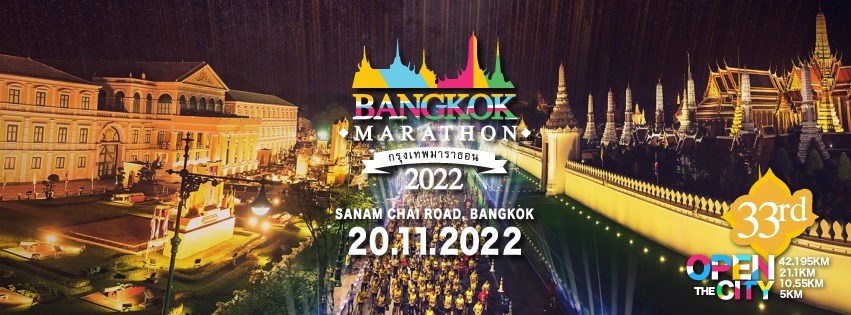 กลับมาอีกครั้งกับตำนานงานวิ่งมาราธอนประเพณีสุดยิ่งใหญ่แห่งมหานครกรุงเทพ ในโอกาสฉลองเปิดเมืองกรุงต้อนรับการกลับมาใช้ชีวิตอันเจิดจรัส สดใส และสนุกสนานของชาวกรุงเทพฯ อีกครั้ง ใน “กรุงเทพมาราธอน 2022 ครั้งที่ 33” วันอาทิตย์ที่ 20 พฤศจิกายน 2565 ณ ถนนสนามไชย เขนพระนคร กรุงเทพฯ