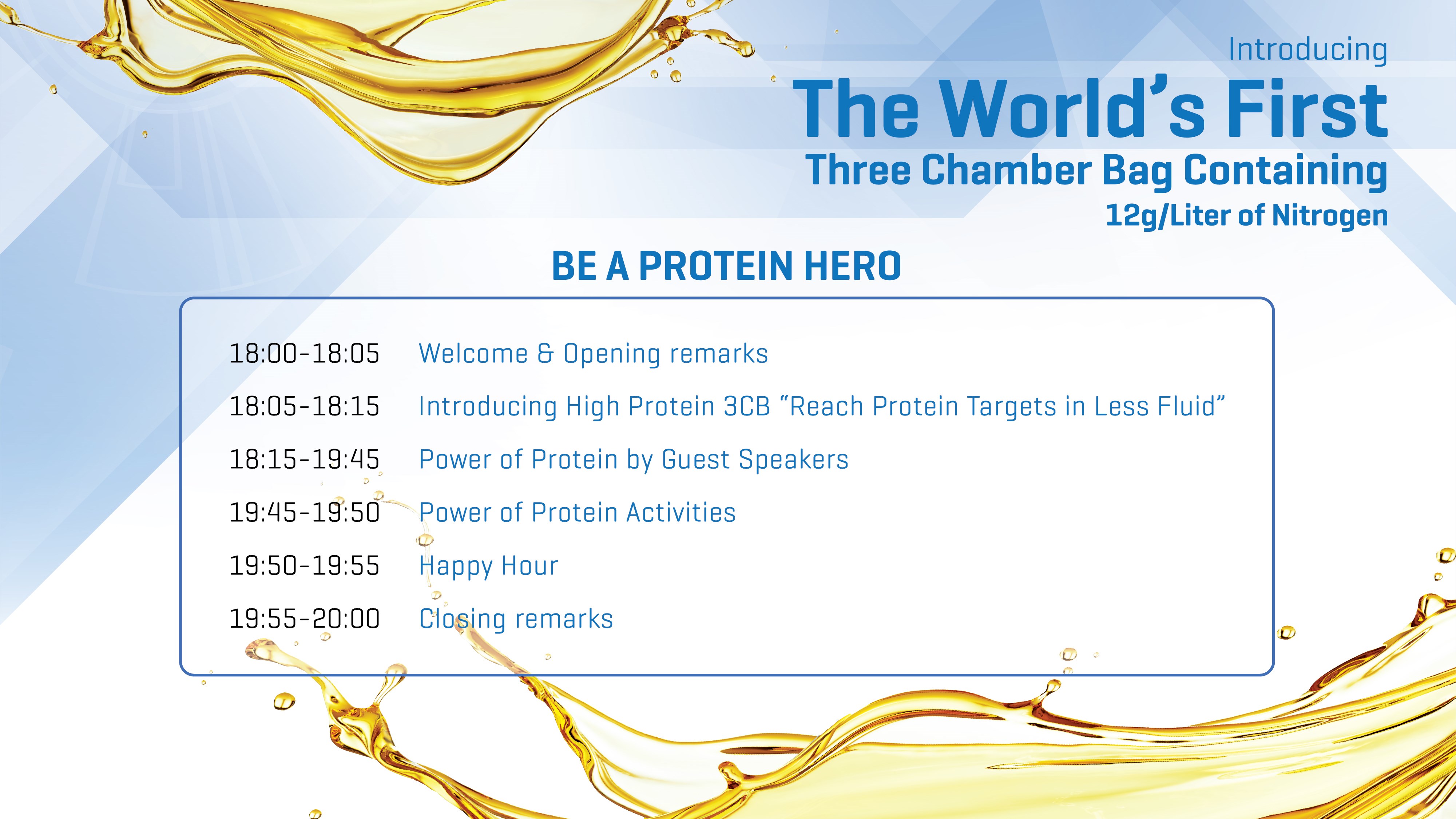 The World’s First Three Chamber Bag containing 12g per liter of Nitrogen "BE A PROTEIN HERO"