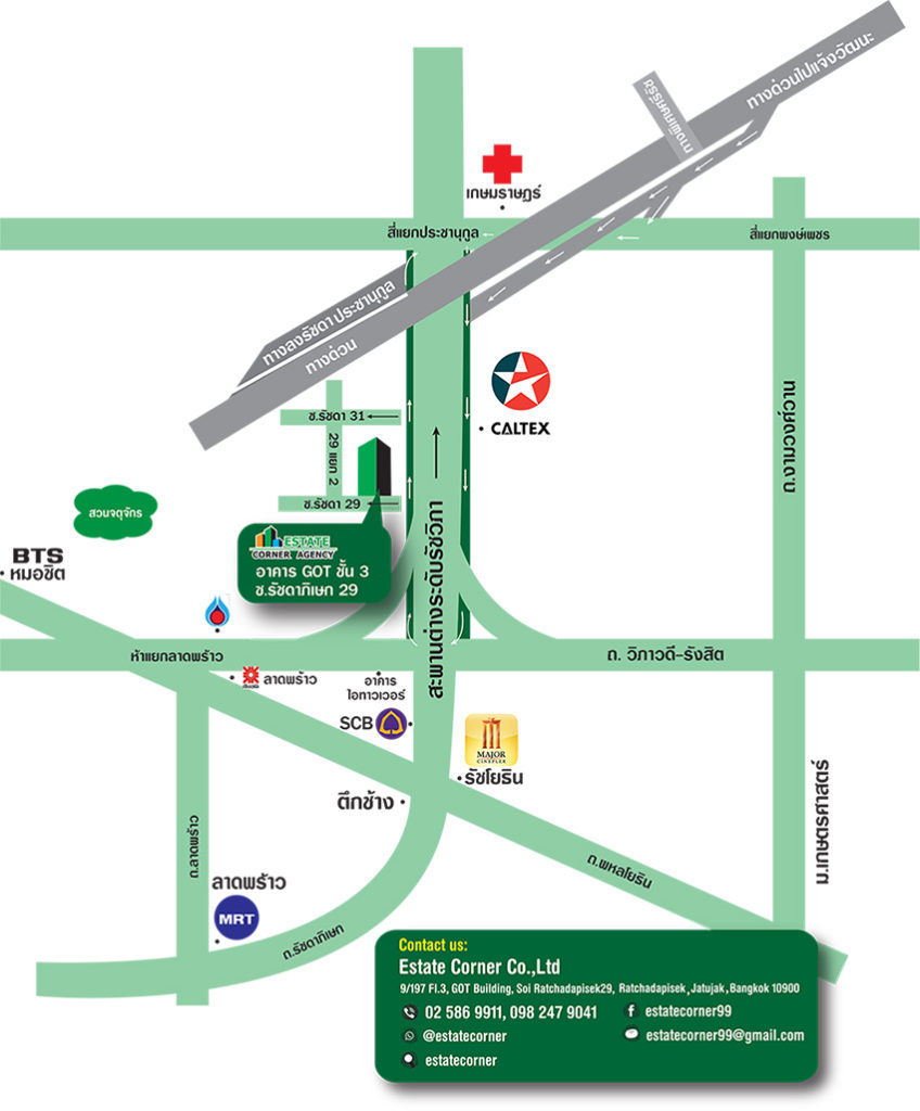บริษัท เอสเตท คอร์นเนอร์ จำกัด ผู้ให้บริการรับฝาก ซื้อ-ขาย-เช่า อสังหาริมทรัพย์ทุกประเภทที่มุ่งเน้นการพัฒนาและยกระดับความรู้ความสามารถของตัวแทนนายหน้าให้เป็นมืออาชีพ รวมถึงการพัฒนามาตรฐานการให้บริการด้านการตลาดให้ทันสมัยและครบวงจร เพื่อสนองตอบการเลือกใช้บริการของลูกค้าได้อย่างมีประสิทธิภาพ โดยคำนึงถึงประโยชน์สูงสุดของ ผู้ซื้อ- ผู้ขาย-นายหน้า และสนับสนุนให้เกิดสภาพคล่องของตลาดอสังหาริมทรัพย์โดยรวม