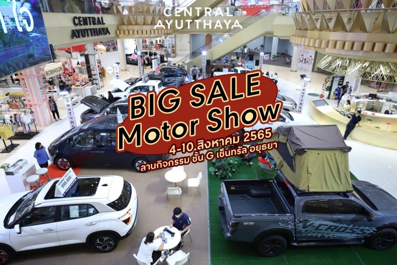 Big Sale Motor Show 2022 วันที่ 4 - 10 สิงหาคม 2565 ณ เซ็นทรัล อยุธยา รวมสุดยอดยนตรกรรมจากแบรนด์ชั้นนำกับงาน "Big Sale Motor Show 2022" พร้อมให้คุณได้สัมผัสและทดลองก่อนใคร และข้อเสนอสุดพิเศษที่งานนี้งานเดียวเท่านั้น ณ ลานกิจกรรม ชั้น G เซ็นทรัล อยุธยา