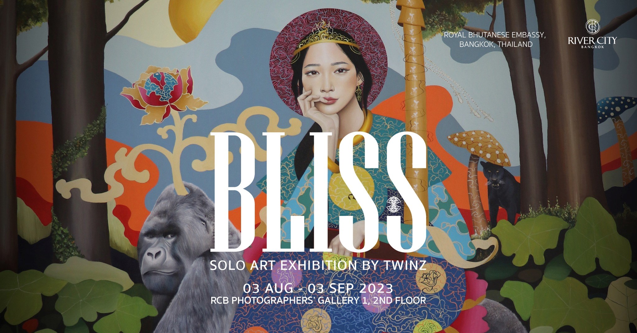 ริเวอร์ ซิตี้ แบงค็อก เตรียมต้อนรับ “Bliss” นิทรรศการที่นำเสนอคอลเลคชั่นผลงานศิลปะอันงดงามของศิลปินสองแฝดมากความสามารถ Tashi Dendup และ Ugyen Samdrup (หรือที่รู้จักกันในชื่อ Twinz) ที่ได้รับแรงบันดาลใจมาจากพุทธศาสนานิกายวัชรยาน (พุทธตันตระ) ไม่ว่าจะเป็นยาหลอนประสาท เชมัน (หรือ ชาแมน) และวัฒนธรรมความเชื่ออันเก่าแก่ ทั้งจับต้องได้และจับต้องไม่ได้ของภูฏาน
