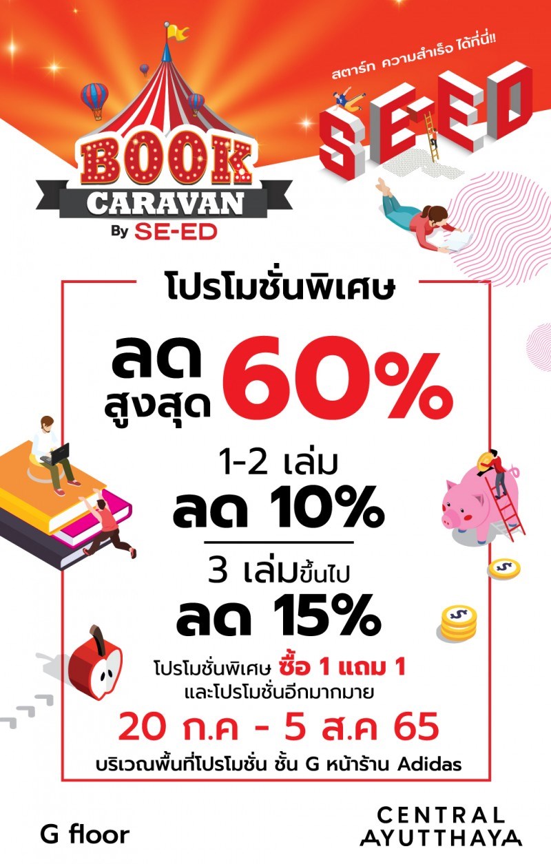 BOOK CARAVAN By SE-ED สินค้าราคาพิเศษ ลดสูงสุด 60% พบกับคาราวานหนังสือ และสื่อเพื่อการเรียนรู้จากหลากหลายสำนักพิมพ์ โปรโมชั่นพิเศษ 1 แถม 1 3 เล่มขึ้นไป ลด 15% 1 - 2 เล่ม ลด 10% วันที่ 20 ก.ค. - 5 ส.ค. 65 ณ ลานกิจกรรม ชั้น G หน้าร้าน Adidas เซ็นทรัล อยุธยา