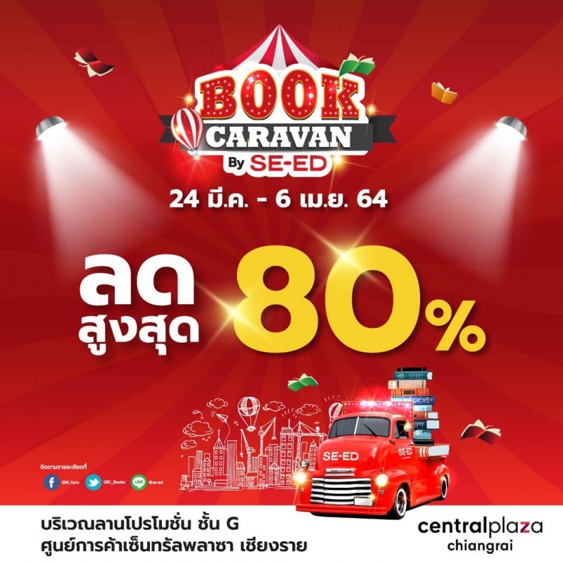 BOOK CARAVAN By SE-ED วันที่ 24 มีนาคม 2564 - 6 เมษายน 2564 ณ ลานโปรโมชั่น ชั้น G เซ็นทรัลพลาซา เชียงราย BOOK CARAVAN By SE-ED อ่านสนุก ปลุกสมอง กลับมาแล้วจ้า เชียงรายพร้อมยัง?? SE-ED ขนหนังสือมากมายหลายหมวดพร้อมสื่อการเรียนรู้ลดราคากว่า 80% โปรเด็ด ๆ โดน ๆ สำหรับคนเชียงรายโดยเฉพาะ