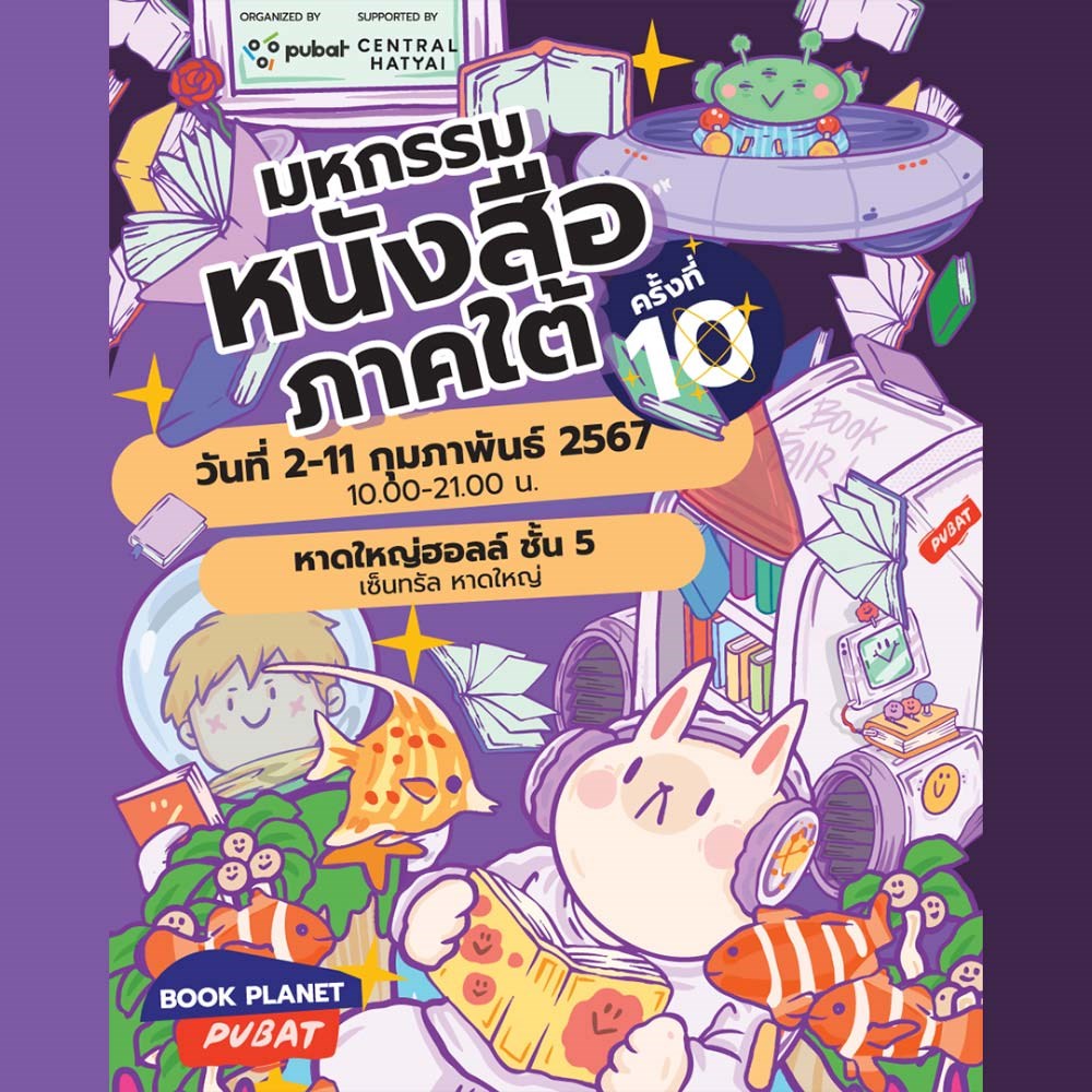 “มหกรรมหนังสือภาคใต้ ครั้งที่ 10” เทศกาลที่นักอ่านชาวภาคใต้ทุกคนต้องมา เราขนหนังสือมาให้ทุกคนเลือกซื้อถึงที่ ทั้งหนังสือออกใหม่ หนังสือขายดี หนังสือน่าอ่าน รวมมาไว้ในเทศกาลนี้แล้ว และโปรโมชั่นสุดพิเศษเฉพาะในงานนี้เท่านั้น ที่มาพร้อมกับกิจกรรม Workshop กิจกรรมแจกลายเซ็น การแสดงบนเวที วันที่ 2 - 11 กุมภาพันธ์ 2567 ณ หาดใหญ่ฮอลล์ ชั้น 5 เซ็นทรัล หาดใหญ่ จัดโดย สมาคมผู้จัดพิมพ์และผู้จำหน่ายหนังสือแห่งประเทศไทย