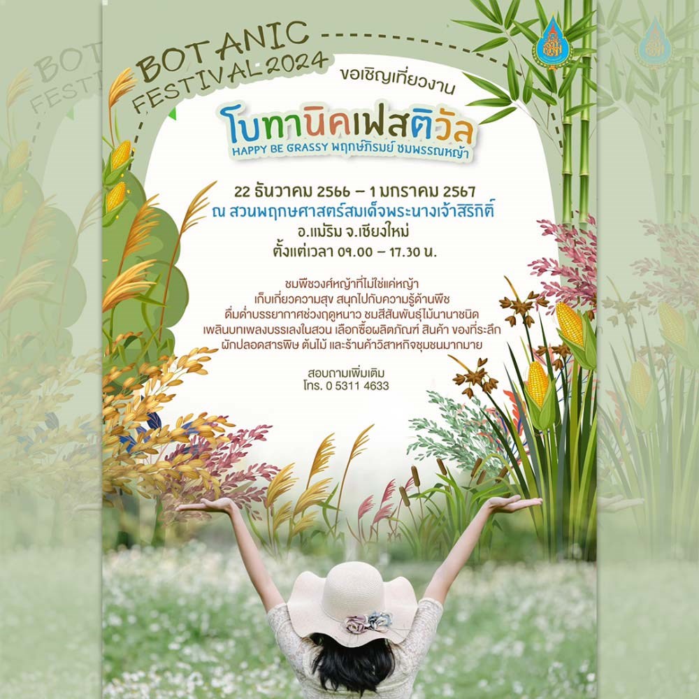 งาน Botanic Festival 2024 “Happy be grassy” พฤกษ์ภิรมย์ ชมพรรณหญ้า ณ สวนพฤกษศาสตร์สมเด็จพระนางเจ้าสิริกิติ์ อำเภอแม่ริม จังหวัดเชียงใหม่ จัดขึ้นระหว่างวันที่ 22 ธันวาคม 2566 - 1 มกราคม 2567