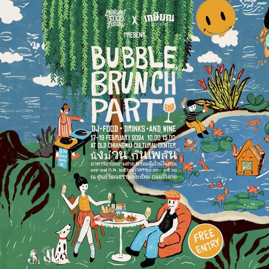Bubble Brunch Party นั่งม่วน กินเพลิน Chiang Mai Food Festival ร่วมกับ เกษียณมาร์เก็ต - The Senior Market สนับสนุนให้คุณกินอาหารแบบไม่เร่งรีบ กินแบบมีคุณภาพทางอารมณ์ ให้คุณได้ใช้เวลาเสาร์อาทิตย์ พูดคุยกับเพื่อนๆ ฟังเพลงดีๆ มีความสุขกับ Quality time ของชีวิต มาพบปะพูดคุยกัน กินอาหารยามสายในสวน ปลดปล่อยความวุ่นวายของชีวิต มาฟังเรื่องราวของเพื่อนๆ บ้าง กินข้าวด้วยกันบ้าง ทำกิจกรรมด้วยกันบ้าง