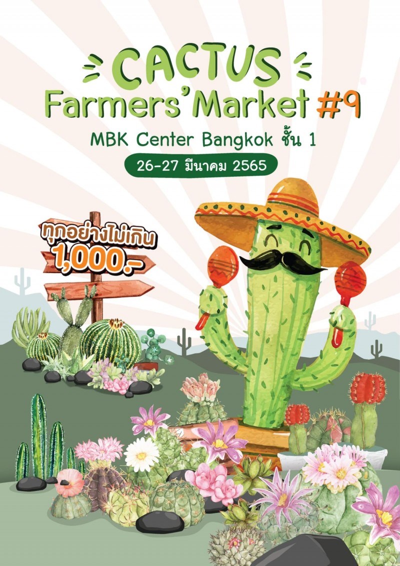 Cactus Farmers’ Market ครั้งที่ 9 วันที่ 26 - 27 มีนาคม 2565 ณ MBK Center พบกันที่งาน Cactus Farmers’ Market ครั้งที่ 9 ต้นไม้ทุกต้นราคาไม่เกิน 1,000.- ของดีมีคุณภาพ กิจกรรมมากมาย และที่สำคัญงานนี้แค่เดินเข้างาน ก็รับของแจกตั้งแต่ลงทะเบียนกันไปเลย ร้านค้าแทบจะยกสวนมากองไว้ตรงหน้า ขนได้ขนไป ลดได้ลดแหลก ขายปลีกในราคาส่ง