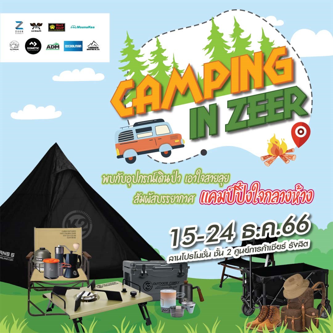 สายลุยมองทางนี้! CAMPING IN ZEER พบกับสินค้าอุปกรณ์เดินป่า เอาใจสายลุย! โต๊ะ & เก้าอี้ เครื่องบดกาแฟ อุปกรณ์กางเต็นและอีกมากมาย มีให้เลือกจากหลายแบรนด์ ครบจบในที่เดียว มาร่วมสัมผัสกับบรรยากาศ แคมป์ปิ้งใจกลางห้างกันได้เลย! วันที่ 15 - 24 ธันวาคม 2566 ที่ลานโปรโมชั่น ชั้น 2 ศูนย์การค้าเซียร์ รังสิต