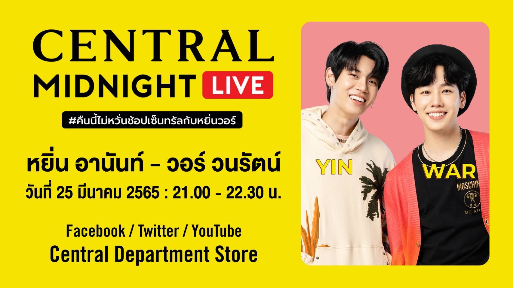ด้วยความพร้อมของห้างเซ็นทรัลที่เป็นห้างแรกและห้างเดียวในไทยที่เชื่อมช่องทางออฟไลน์และออนไลน์เข้าไว้ด้วยกันเป็นแพลตฟอร์มออมนิชาแนลอย่างสมบูรณ์แบบ ในทุกๆ แคมเปญของห้างเซ็นทรัลจึงมีความแข็งแกร่งรอบด้าน สร้างการเติบโตในธุรกิจค้าปลีกด้วยการเพิ่มโอกาสใหม่ๆ ในทุกช่องทางการขาย ผสานทั้งด้านเทคโนโลยีและกลยุทธ์ทางการตลาดเข้าด้วยกัน เพื่อตอบโจทย์ความสะดวกสบายในทุกไลฟ์สไตล์ของลูกค้าแต่ละท่านให้ได้มากที่สุด รวมไปถึงการใช้ช่องทาง              โซเชียลมีเดีย ดารา และอินฟลูเอ็นเซอร์ เพื่อสร้างการรับรู้ โปรโมตแคมเปญในวงกว้าง ซึ่งครั้งนี้ แฟนคลับ หยิ่น-อานันท์ และวอร์-วนรัตน์ ห้ามพลาด! ชมไลฟ์ความสนุก กับตอน #คืนนี้ไม่หวั่นช้อปเซ็นทรัลกับหยิ่นวอร์ ในวันที่ 25 มีนาคม 2565 เวลา 21.00 - 22.30 รับชมผ่านทาง YouTube, Facebook และ Twitter ของ CentralDepartmentStore  และยังมีไฮไลต์พิเศษกับการเปิดตัวหนังโฆษณาตัวใหม่เป็นภาคต่อจากคอนเซ็ปต์ GuiltyFreeFestival ช้อปเลยเพราะไม่เคยมี สร้างสีสันและรอยยิ้มให้ทุกคนได้รู้สึกเอ็นจอยและเข้าถึงความสนุกในครั้งนี้ ซึ่งรับชมทาง YouTube : https://www.youtube.com/watch?v=v74Fyu5XXCU
