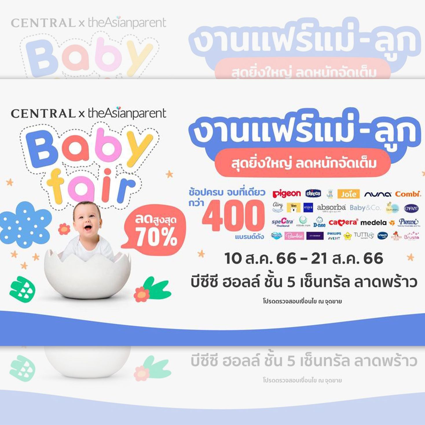 กลับมาอีกครั้ง! Central x theAsianparent Baby Fair งานแฟร์สินค้าแม่-ลูกสุดยิ่งใหญ่ ลดหนักจัดเต็ม สูงสุด 70% ตั้งแต่วันที่ 10 ส.ค. 66 - 21 ส.ค. 66 ที่ BCC Hall ชั้น 5 เซ็นทรัล ลาดพร้าว