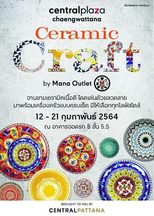 Ceramic Craft by mana outlet วันที่ 12 - 21 กุมภาพันธ์ 2564 ณ แจ้งวัฒนะ ฮอลล์ อาคารลานจอดรถ B ชั้น 5.5 เซ็นทรัลพลาซา แจ้งวัฒนะ เอาใจสายกิน สายเชฟ สาย Healthy สายแม่บ้าน FoodStylist โปรดฟังทางนี้ เพราะเราจะยกโกดังจานจากแบรนด์ MANA OUTLET แบรนด์ดัง สุดปังย่านบางแค!! มาไว้ที่นี่ ในงาน Ceramic Craft by mana outlet "มานะ เอาท์เล็ท" Mana Outlet อาณาจักรเครื่องครัวสุดฮิต ราคาสบายกระเป๋า จุดเด่นคือโกดังจานที่มีจานหลากหลายแบบให้เลือกมากมาย โดดเด่นด้วยลวดลาย อาทิ จานเซรามิคลายแบบน่าหลงรัก เห็นแล็วอยากเป็นเจ้าของ แถมราคายังน่าหลงใหลไปอีก พร้อมอุปกรณ์เครื่องครัวนานาชนิดแบบครบเซ็ต มีให้เลือกทุกไลฟ์สไตล์ จบครบในที่เดียวในราคาที่จับต้องได้
