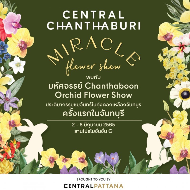 Chanthaboon Orchid Flower Show วันที่ 2 - 8 มิถุนายน 2565 ณ เซ็นทรัล จันทบุรี ครั้งแรกในจันทบุรี! พบกับมหัศจรรย์ Chanthaboon Orchid Flower Show ประติมากรรมชมจันทร์ในทุ่งดอกเหลืองจันทบูร ภายในงานพบกับไฮไลต์ต่าง ๆ มากมาย อาทิ Interactive Flower Show ศิลปะประติมากรรมดอกเหลืองจันทบูร Workshop ขนมไทยทำจากดอกไม้ โดยหอมรัญจวน วันที่ 2 - 8 มิ.ย. 65 ณ ลานกิจกรรมชั้น G เซ็นทรัล จันทบุรี