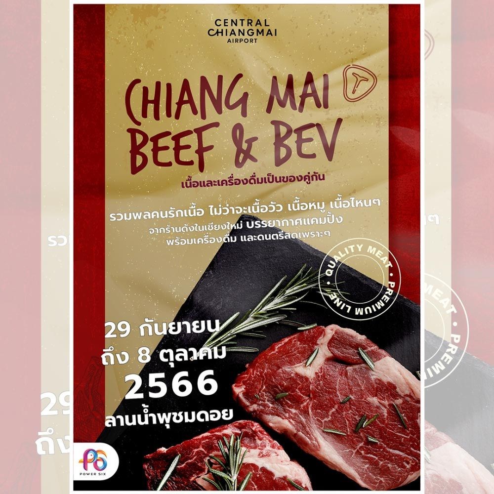 ชวนสายเนื้อออกมางาน Chiangmai Beef & Bev กันเอาใจสายเนื้อ ไม่ว่าจะชอบเนื้อแบบไหนก็มางานนี้ได้ ดื่มด่ำบรรยากาศสุดฟิน ดูพระอาทิตย์ตกดิน ทานเนื้อหอมฉุยคู่กับเครื่องดื่มเย็น ๆ พร้อมกับดนตรีสดเพราะ ๆ วันที่ 29 กันยายน - 8 ตุลาคม 66 ณ ลานน้ำพุชมดอย ศูนย์การค้าเซ็นทรัล เชียงใหม่ แอร์พอร์ต