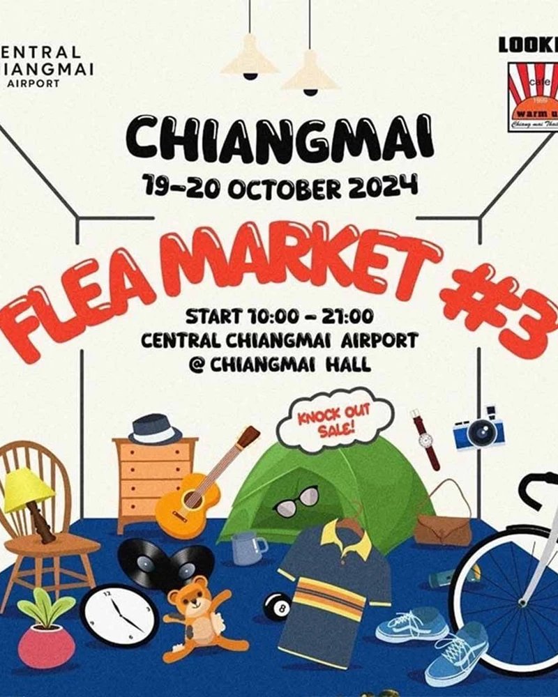 Chiang Mai Flea Market 3 ตลาดนัดของมือสองติดแอร์ใหญ่ที่สุดในภาคเหนือ สินค้ามือสองทุกอย่างที่อยากได้ อาทิ เสื้อยืดปีเก่า (vintage), อุปกรณ์แคมป์ปิ้ง, แผ่นไวนิลเก๋ ๆ, ของเล่นสะสม, รองเท้า, เสื้อ, กางเกง, กระเป๋าแบรนด์เนม, เฟอร์นิเจอร์, accessories และอื่น ๆ อีกเยอะมาก สนุกกับวงดนตรีสุดคูลภายในงาน