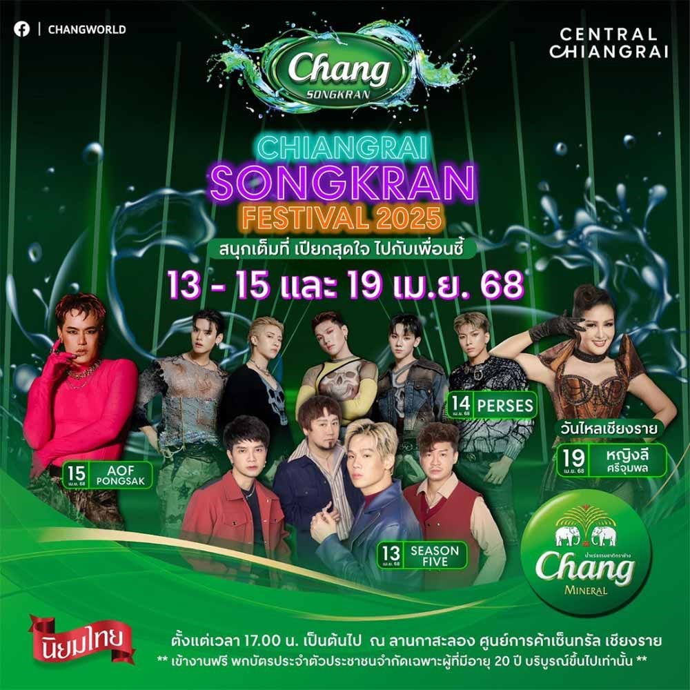 Chang Songkran Presents "CHIANGRAI SONGKRAN FESTIVAL 2025" ชาวเชียงรายพร้อมเปียกกันรึยัง สงกรานต์นี้! เซ็นทรัลเชียงราย พร้อมสาด...ระเบิดความมันส์กับอุโมงค์น้ำขนาดใหญ่แบบชุ่มฉ่ำสะใจ สนุกเต็มที่ เปียกสุดใจ ไปกับเพื่อนซี้ 4 วันเต็ม! Line up Artists กับ 4 ศิลปิน