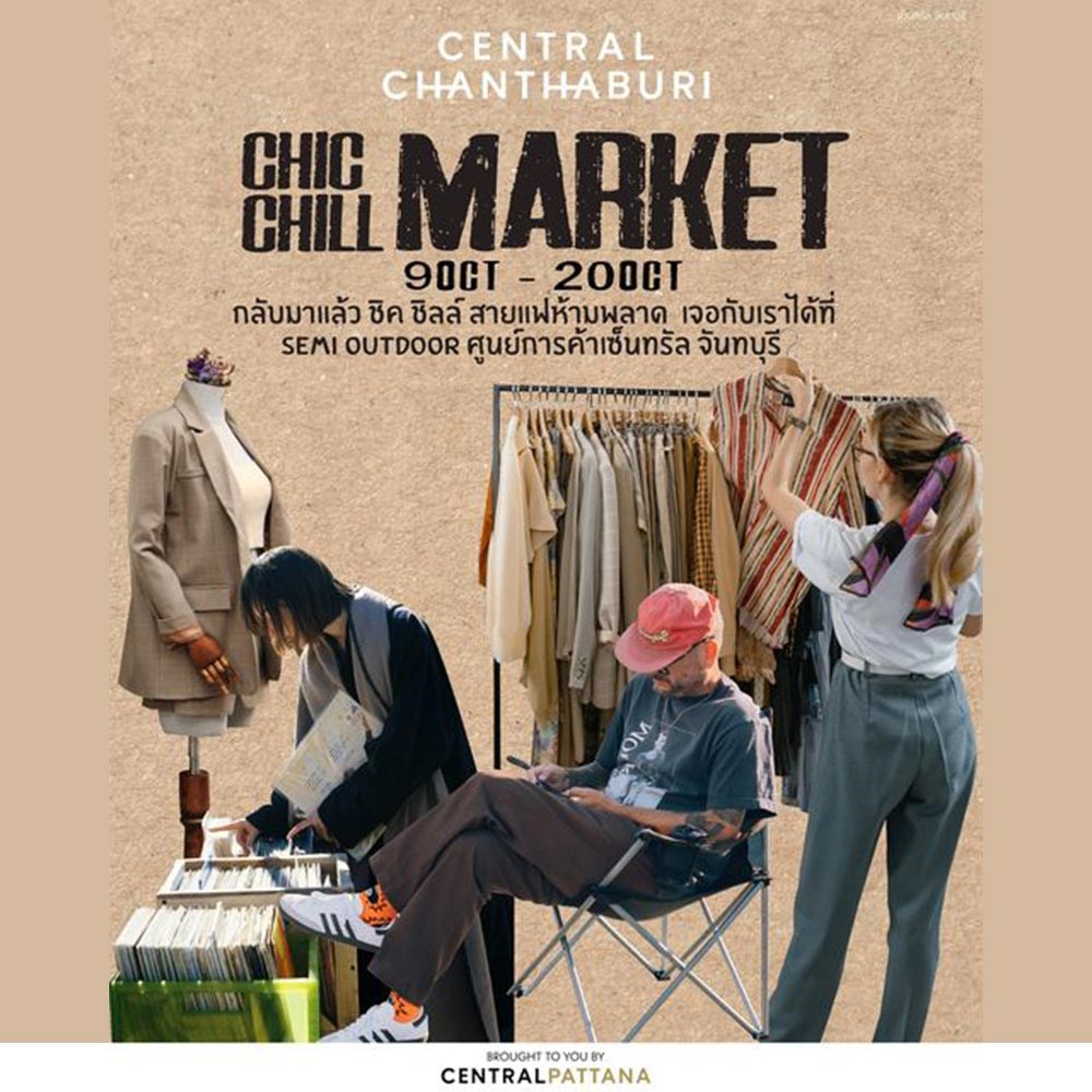 กลับมาอีกครั้งกับงาน Chic Chill Market เอาใจแฟชั่น สายช้อปปิ้ง คนรักการแต่งตัว ยกขบวน เสื้อผ้าแนวน่ารักสุดคิวท์ เดรส กระโปรง รองเท้า หรือเครื่องประดับต่างๆ ขนขบวนมาเสิร์ฟให้ชาวจันทบุรี สายแฟชั่นห้ามพลาด เตรียมตัวให้พร้อมแล้วมาเจอกัน ตั้งแต่วันที่ 9 - 20 ต.ค. 66 ณ ลานกิจกรรม Semi Outdoor ชั้น G ศูนย์การค้าเซ็นทรัล จันทบุรี