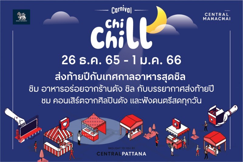 ออกมาชิล Chill Chill Carnival เทศกาลอาหาร และดนตรี ส่งท้ายปี ที่หลายคนรอคอย กลับมาแล้ว! ชิม อาหารอร่อยจากร้านดัง ชิล ท่ามกลางบรรยากาศส่งท้ายปี ชม คอนเสิร์ตจากศิลปินดัง และดนตรีสดทุกวัน