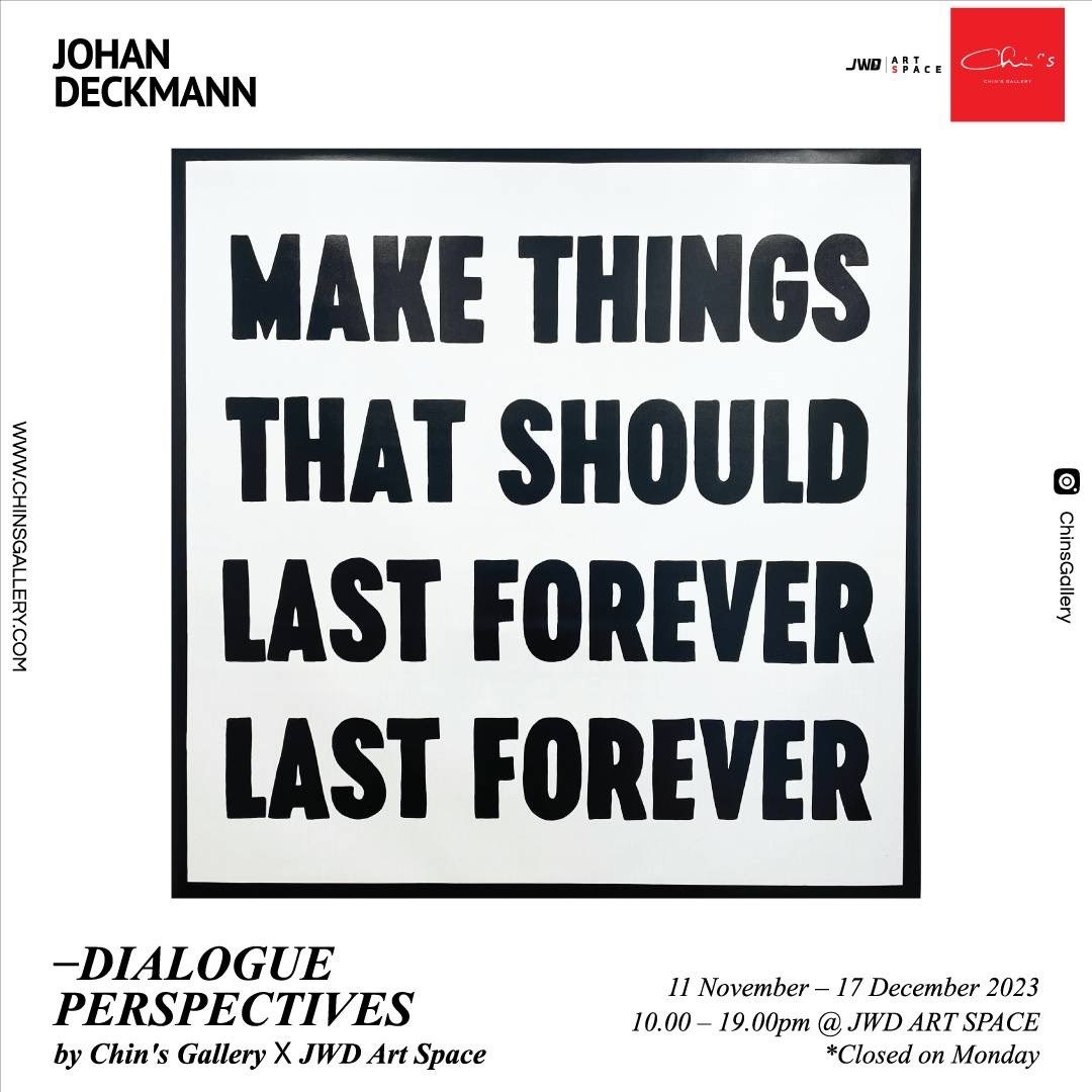 ศิลปินท่านแรก โยฮัน เดคแมน มากับนิทรรศการ The Art of Embracing Chaos จากโคเปนเฮเกน ที่เปรียบเสมือนแรงกระตุ้นให้ค้นหาความชัดเจนและจุดมุ่งหมายของมนุษย์บนเส้นทางชีวิตที่ล้วนอนิจจัง เปิดประตูผ่านงานศิลป์เพื่อเพิ่มแรงบันดาลใจและค้นหาตัวตนผ่านการค้นลึกไปในจิตใจ เดคแมนสร้างสรรค์ผลงานผ่านตัวอักษรเพราะเขาเชื่อว่าตัวอักษรเป็นศิลปะทรงพลังเปี่ยมความหมาย ไม่ต่างจากงานศิลปะแนวอื่น เดคแมนผสานความสามารถด้านการวาดภาพ บทกวี และหลักจิตวิทยา อย่างแยบยล เพื่อสร้างสรรค์งานศิลปะด้วยการดำดิ่งสู่ความหมายของชีวิตอันซับซ้อน ผ่านผลงานตัวอักษรบนปกผ้าห่อหนังสือ โดยหวังให้ผู้อ่านได้สะท้อนคิด งานของเดคแมนโยงใยเรื่องราวโดยปราศจากปัจจัยด้านเพศ วัฒนธรรมและอายุ จึงเป็นลูกเล่นที่เรียบแต่ทรงพลังบนพื้นฐานของถ้อยคำที่ความงดงามและสมถะ