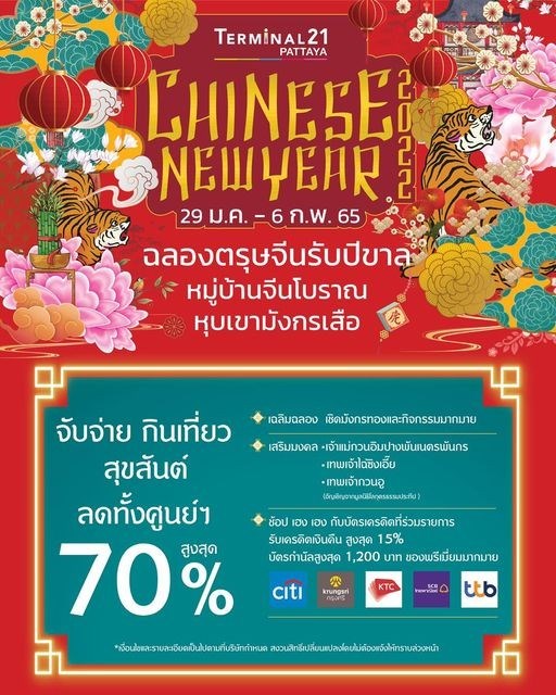 CHINESE NEW YEAR 2022 ตรุษจีนนี้ วันเที่ยวจะสุดปัง แวะถ่ายรูปสุดปัง กับบรรยากาศโรงเตี้ยมในป่าไผ่ เสกสรรตำนานหมู่บ้านเสือไว้ใจกลางศูนย์การค้าฯWritten by หมู่บ้านจีนโบราณหุบเขามังกรเสือที่ได้รับความเชื่อว่า เดินผ่านแล้วจะโชคดี ห่างไกลโรคภัยไข้เจ็บ ช่วยปัดเป่า ป้องกันวิญญาณชั่วร้าย คุ้มครองให้แคล้วคลาดจากภัยอันตรายต่าง ๆ อลังการต้นดอกเหมยบานสะพรั่ง และโครมแดงประดับเฉลิมฉลองเทศกาลตรุษจีน เสริมสิริมงคล โชคลาภ อัญเชิญเทพเจ้าจากมูลนิธิโลกุตรธรรมประทีป สักการะเจ้าแม่กวนอิมปางพันเนตรพันกร ขอพรกับเทพเจ้าไฉ่ซิงเอี๊ย เทพแห่งความร่ำรวยที่จะให้โชคลาภด้านเงินทองตลอดปี เสี่ยงเซียมซี ทำนายดวงชะตาปี 2022 ขอพรกันเสร็จแล้วก็มาเดินชิม ฟินช้อป เมนูและสินค้ามงคล อาหาร ขนม เครื่องลางเสริมดวง เสริมมงคลเฮง ๆ ปัง ๆ ต้อนรับปีใหม่และตรุษจีน รับชมการแสดง ฟรีมากมาย อาทิ เชิดมังกรทองและสิงโต ยาว 40 เมตร, การแสดงมายากล เปลี่ยนหน้ากากจีน, การแสดงวัฒนธรรมจีนโบกสะบัดพัดฟ้านางพญาฮ่องเต้, การแสดงดนตรีจีน กู่เจิง และความสนุกอีกมากมาย *รายละเอียดอาจมีการเปลี่ยนแปลงตามความเหมาะสมของสถานการณ์โควิด-19 โดยไม่ต้องแจ้งให้ทราบล่วงหน้า CHINESE NEW YEAR 2022 หมู่บ้านจีนโบราณหุบเขามังกรเสือ วันที่ 29 ม.ค - 6 ก.พ 65 ที่ชั้น G - Paris, เทอร์มินอล21 พัทยา ฉลองตรุษจีนต้อนรับปีเสือ บรรยากาศหมู่บ้านจีนโบราณหุบเขามังกรเสือ