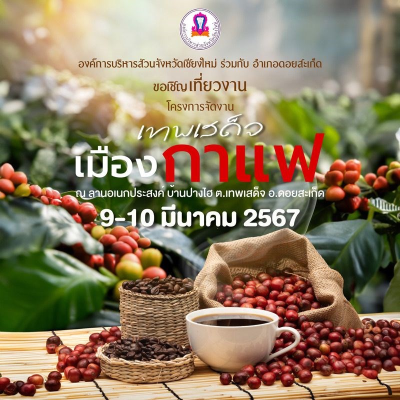 องค์การบริหารส่วนจังหวัดเชียงใหม่ ร่วมกับ อำเภอดอยสะเก็ด เชิญชวนเที่ยวงาน "งานเทพเสด็จเมืองกาแฟ ครั้งที่ 10” ประจำปี 2567