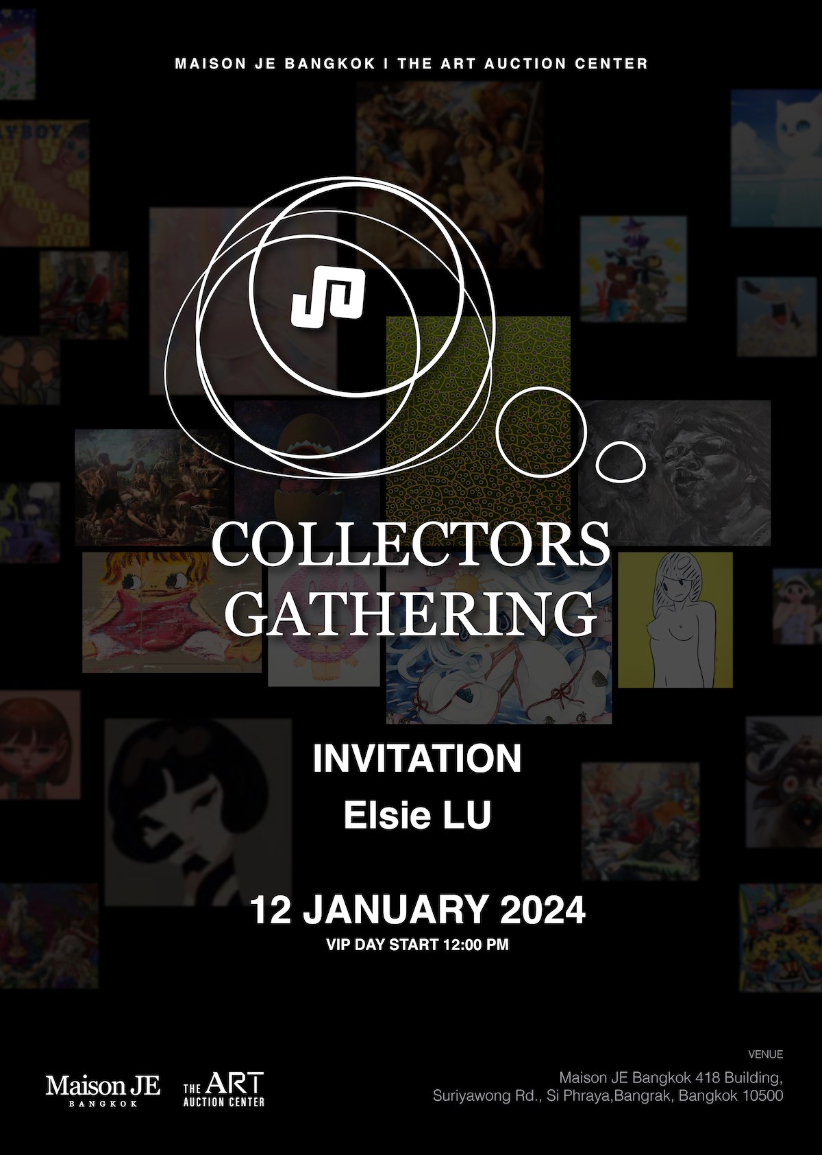 The exhibition "Collectors Gathering" will be showcased from 12 January to 11 February 2024. Viewable every day from 12.00 PM to 20.00 PM at Maison JE Bangkok Art Space, Surawong Road, Si Phraya Subdistrict, Bang Rak District, Bangkok