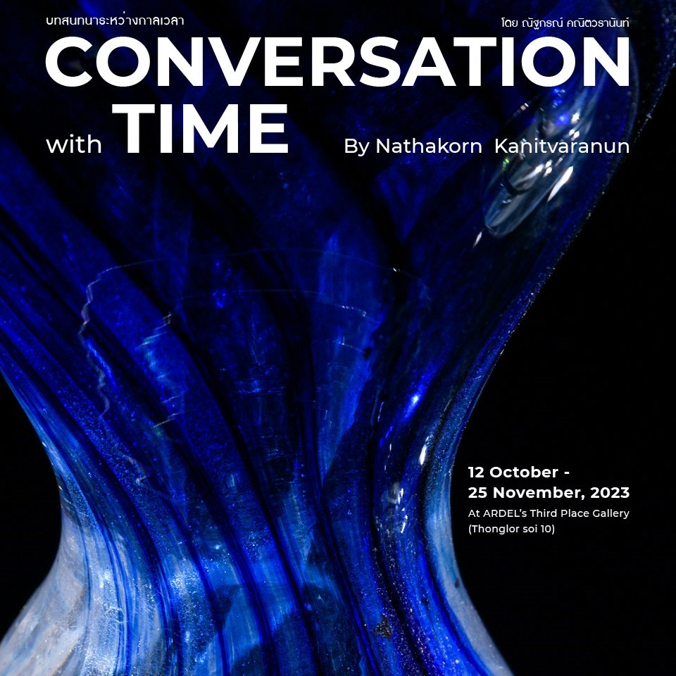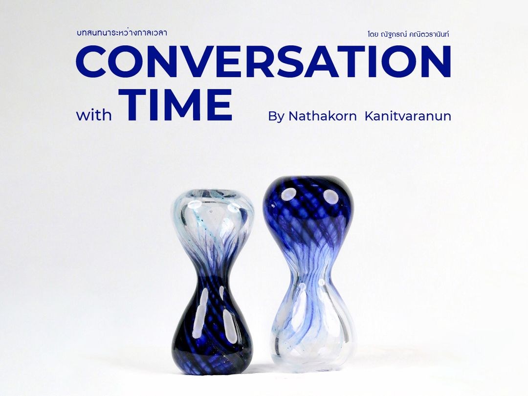 นิทรรศการ บทสนทนาระหว่างกาลเวลา เชิญชวนทุกคนละทิ้งชีวิตที่วุ่นวายในแต่ละวัน จากความผิดหวังที่ผ่านมาในอดีต จากการเปรียบเทียบและแข่งขันกับตัวเองหรือผู้อื่นในปัจจุบัน และจากความคาดหวังที่ยังมาไม่ถึงในอนาคต ให้หันมาตระหนักถึงกาลเวลาที่เรามีอยู่ในขณะนี้ให้มากขึ้น ผ่านผลงานศิลปะสื่อผสมจากวัสดุแก้วและดิน โดยบันทึกช่วงเวลาผ่านพื้นผิวที่เปลี่ยนแปลงไปของวัสดุเหล่านั้นขณะรังสรรค์ผลงาน บอกเล่าการเดินทาง การเปลี่ยนแปลง และการเคลื่อนไหวของกาลเวลาที่เดินไปอย่างต่อเนื่อง แม้ว่าเราจะหยุดเดินก็ตาม
