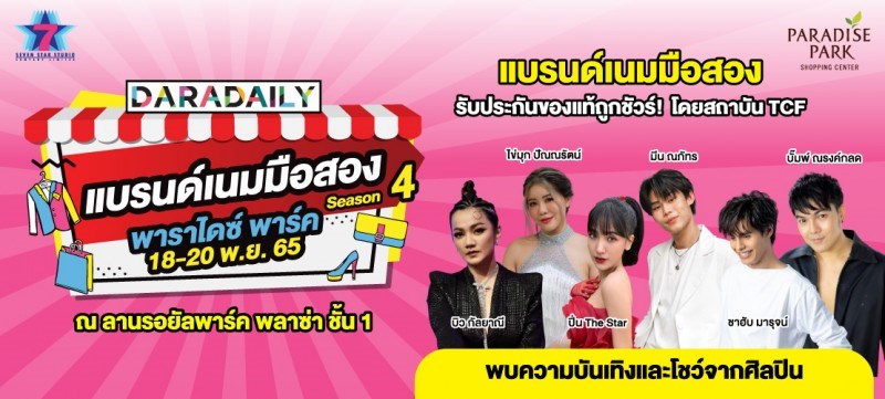 กลับมาตามคำเรียกร้อง! แบรนด์เนมมือสอง ของเหล่าดาราดัง!! ขนกระเป๋า รองเท้า ของใช้ส่วนตัว คุณภาพคุ้มค่าในราคาโดนใจ รับประกัน ไม่ต้องกลัวของปลอม วันที่ 18 - 20 พ.ย. 65 เวลา 10.00 - 21.00 น. ที่ชั้น 1 ลานรอยัล พาร์ค พลาซ่า พาราไดซ์ พาร์ค